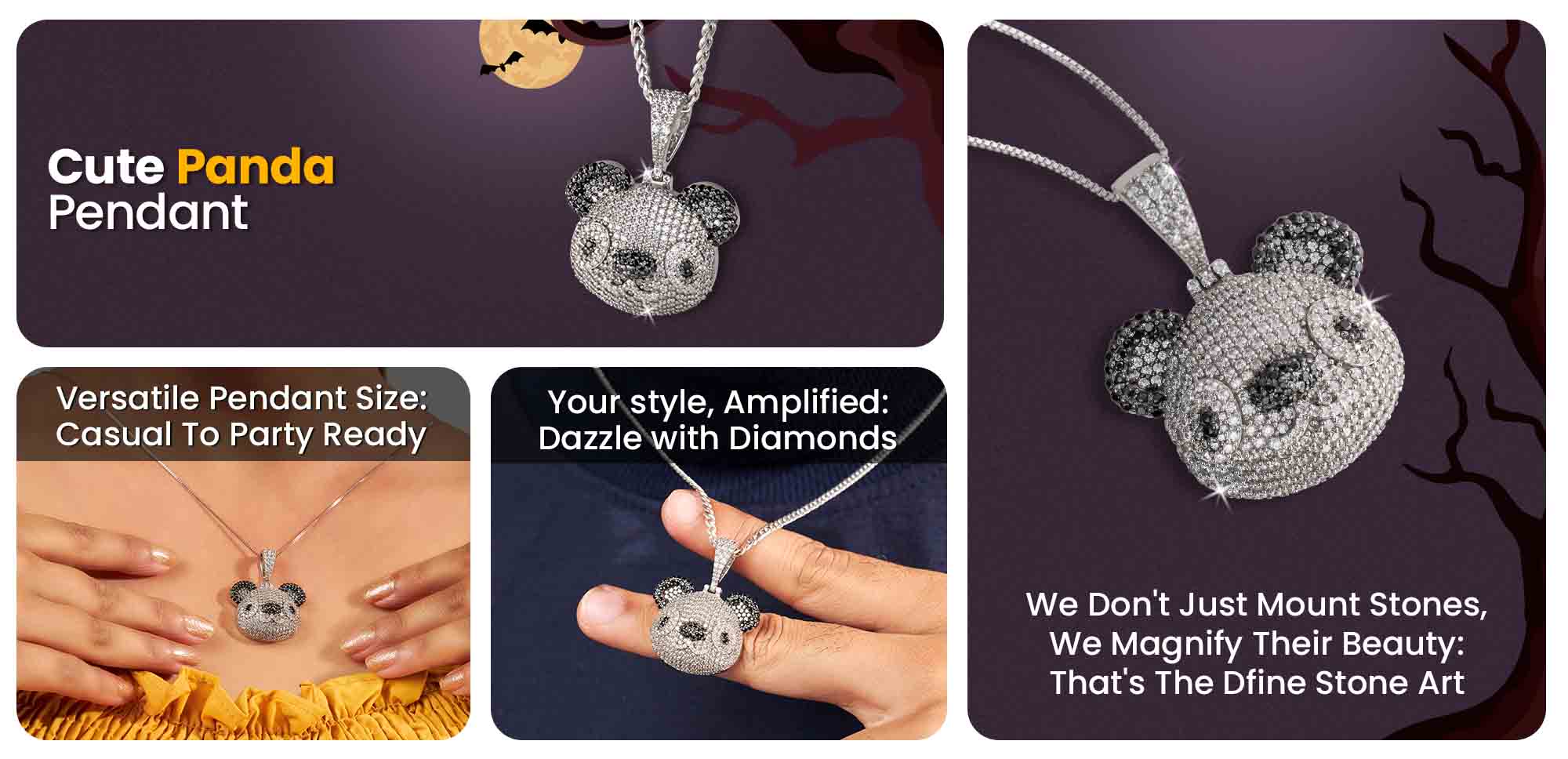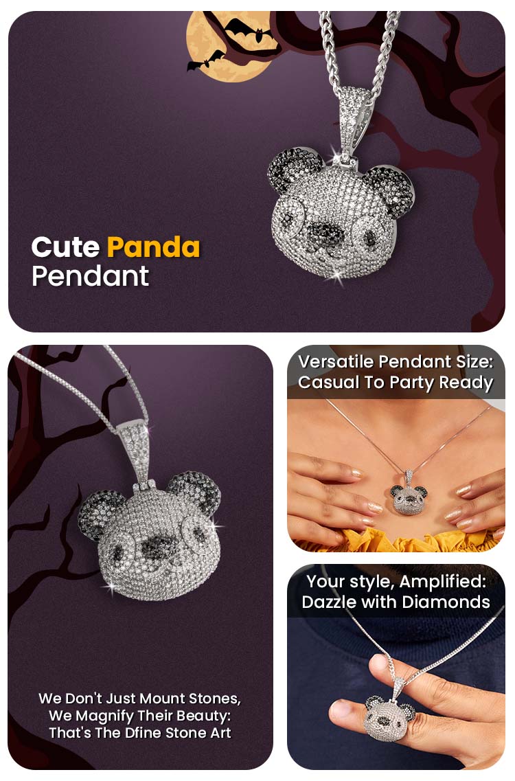 Iced Out Panda Pendant Necklace Panda Jewelry Moissanite Sterling Silver