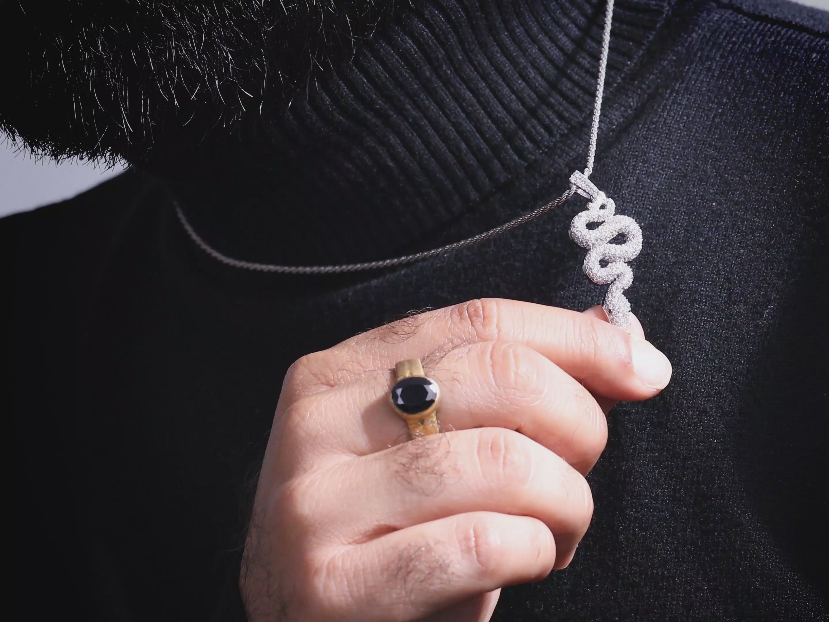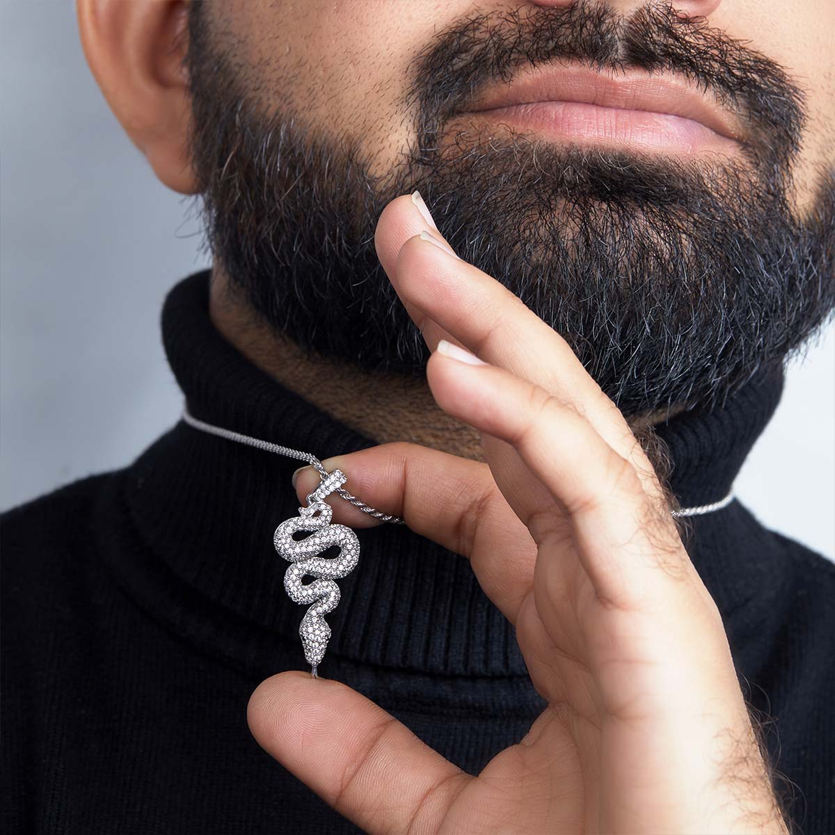 Moissanite Iced Snake Necklace Serpent Pendant Sterling Silver