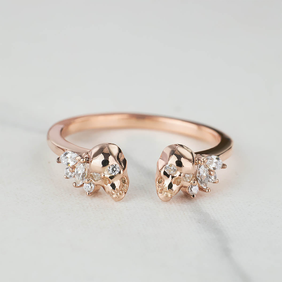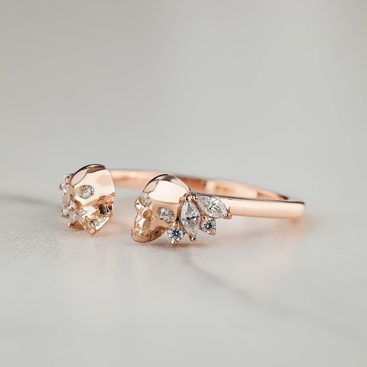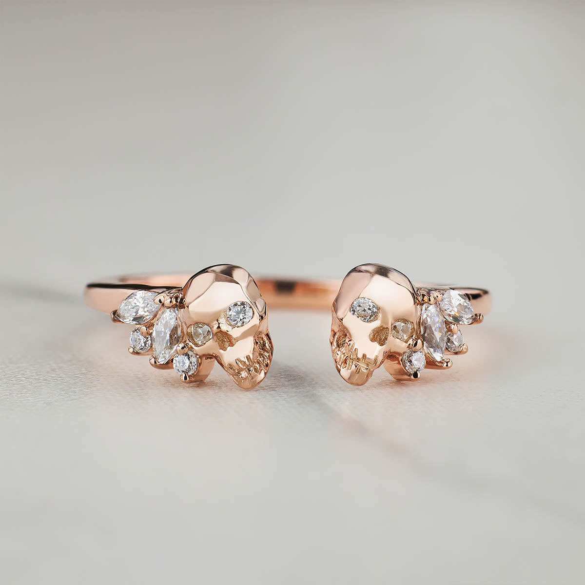 Moissanite Open Skull Ring Enhancer Engagement Wedding Rings Women Rose Gold