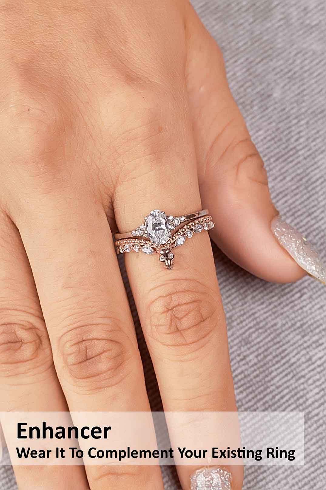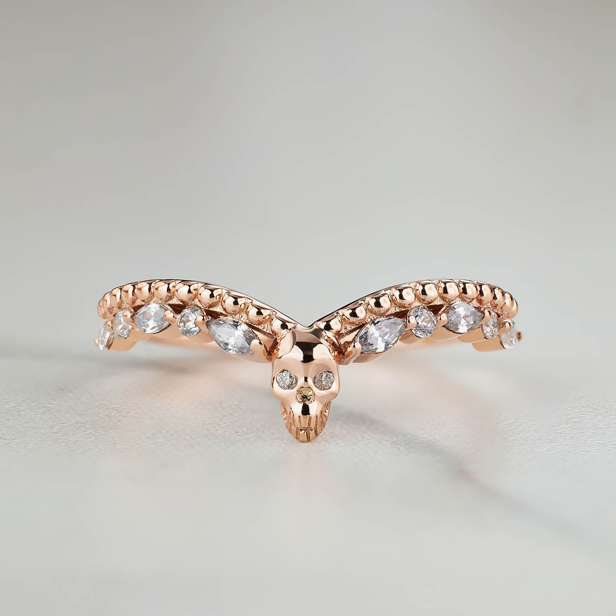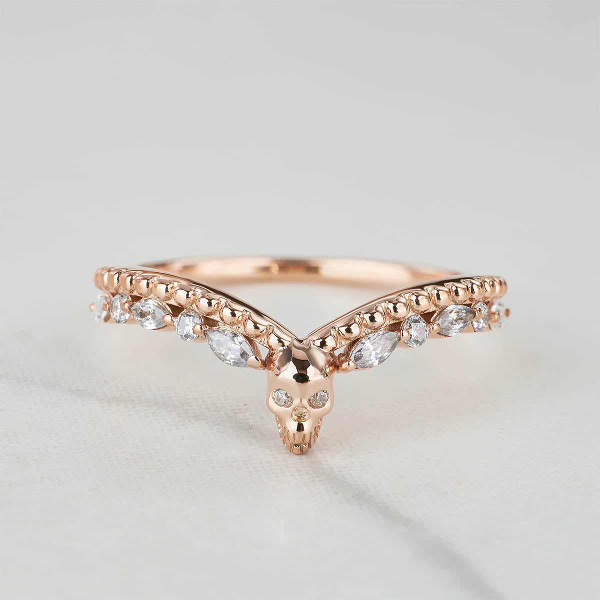 Moissanite Skull Enhancer Ring Engagement Wedding Band for Women Rose Gold