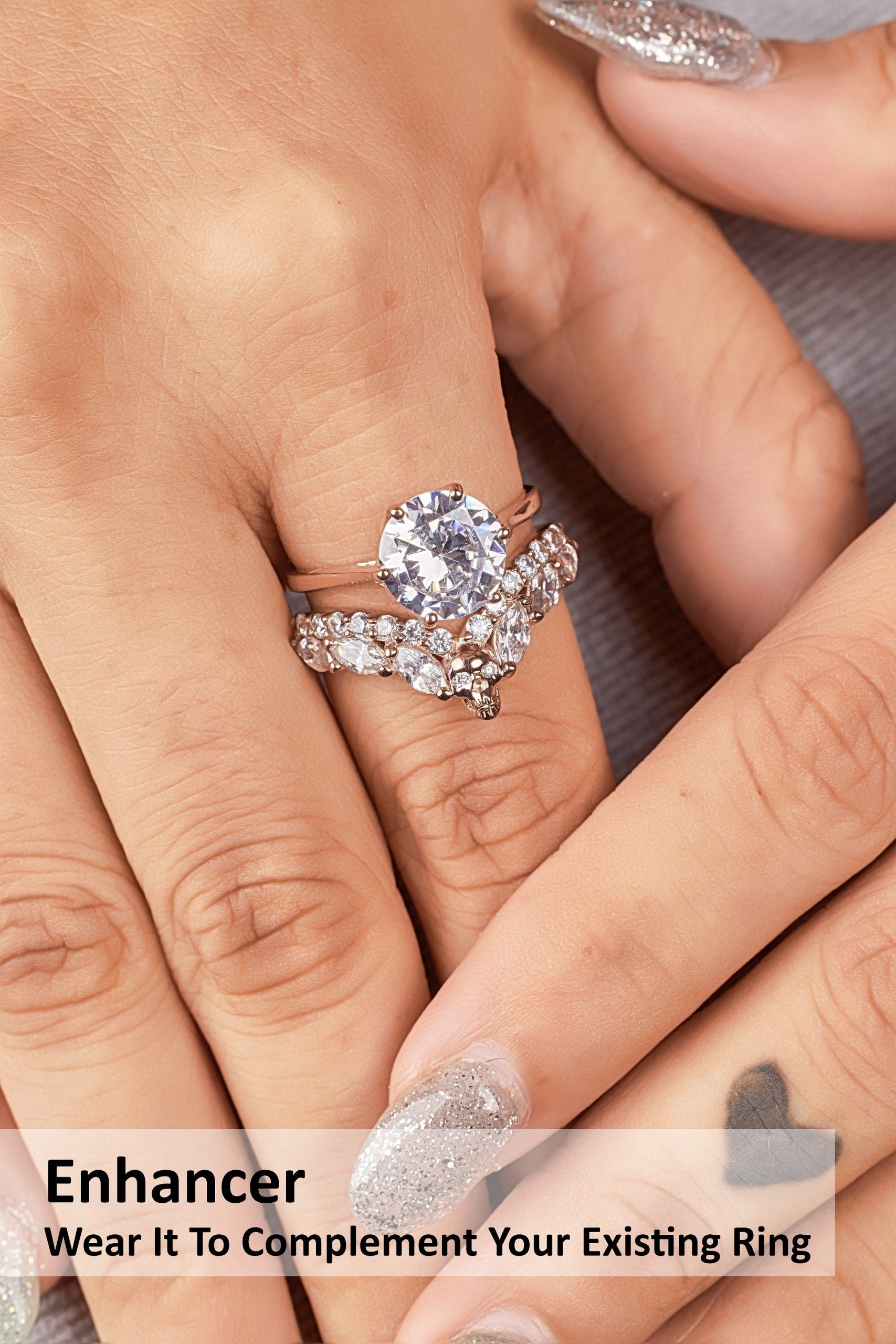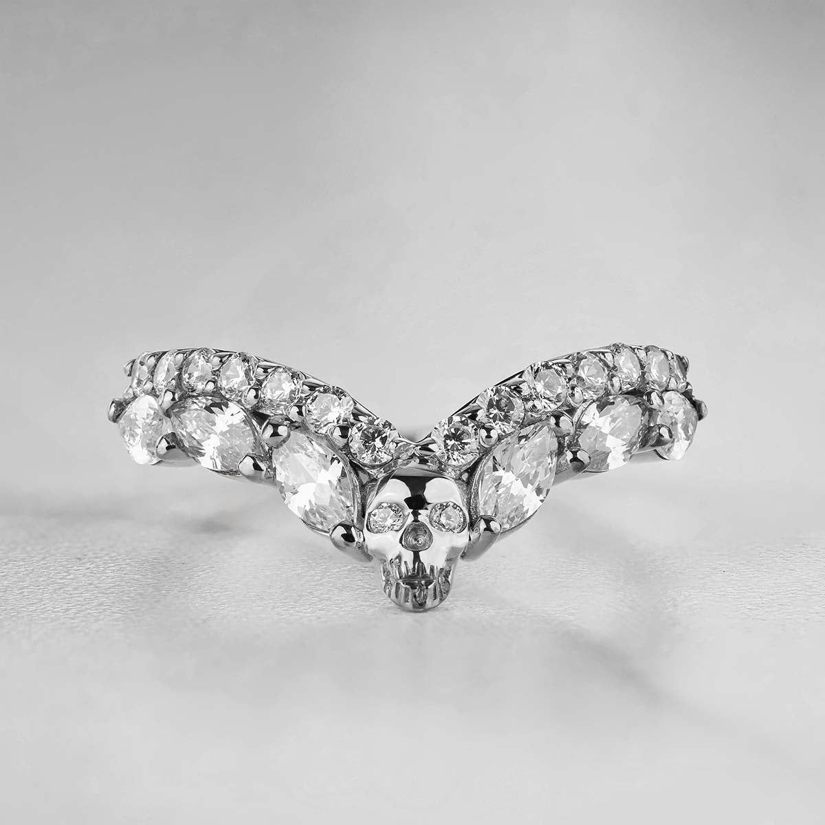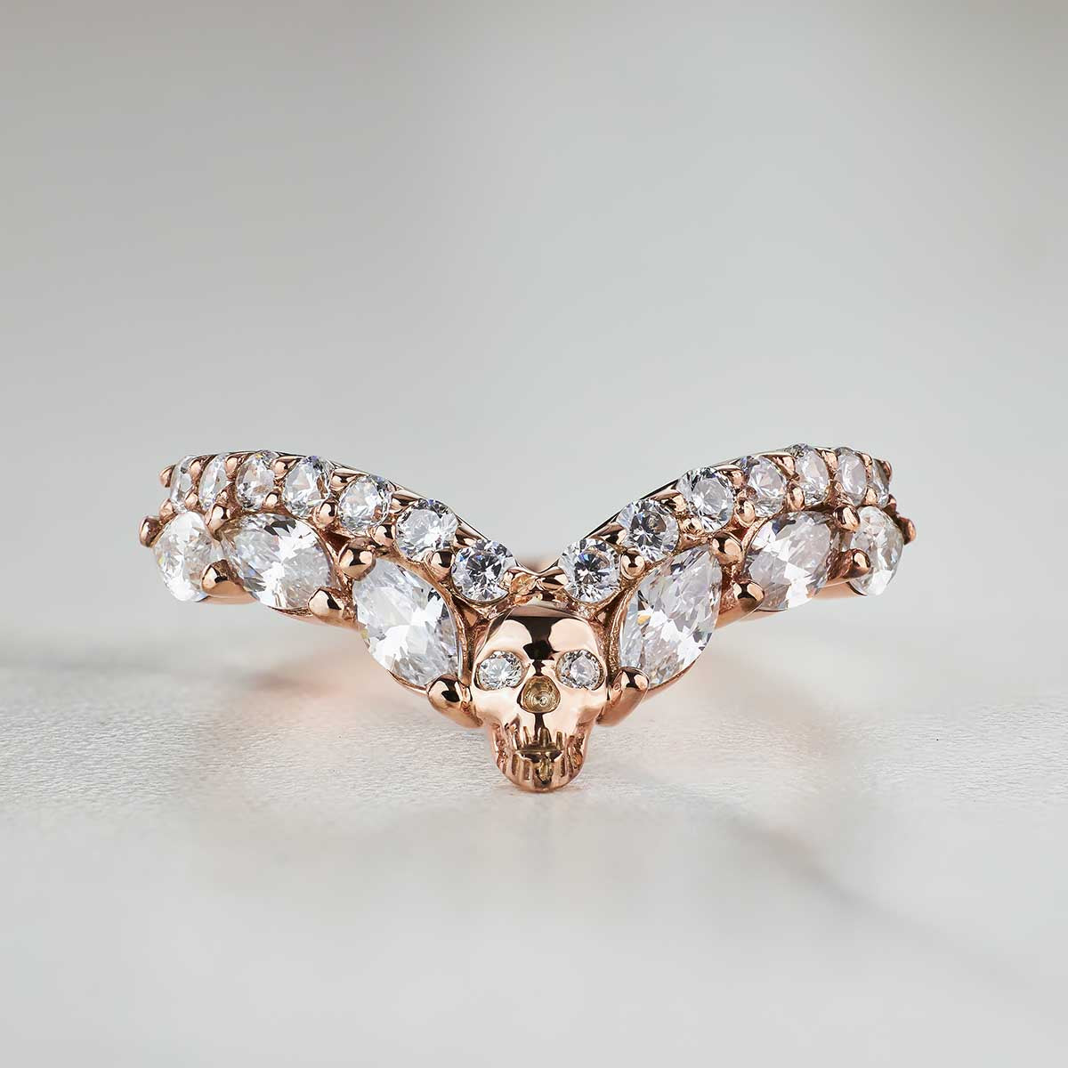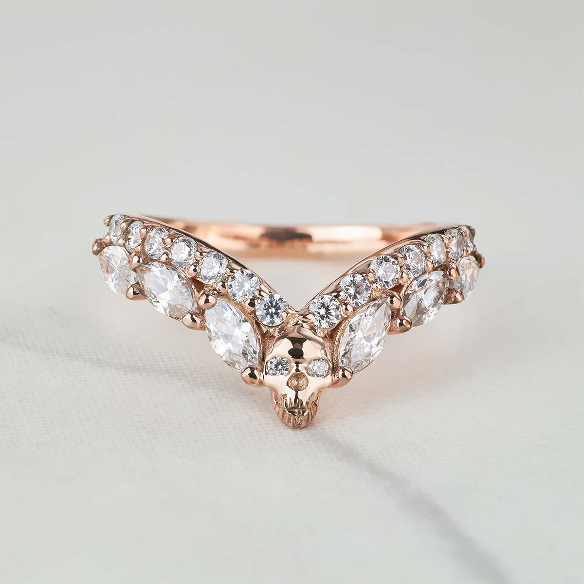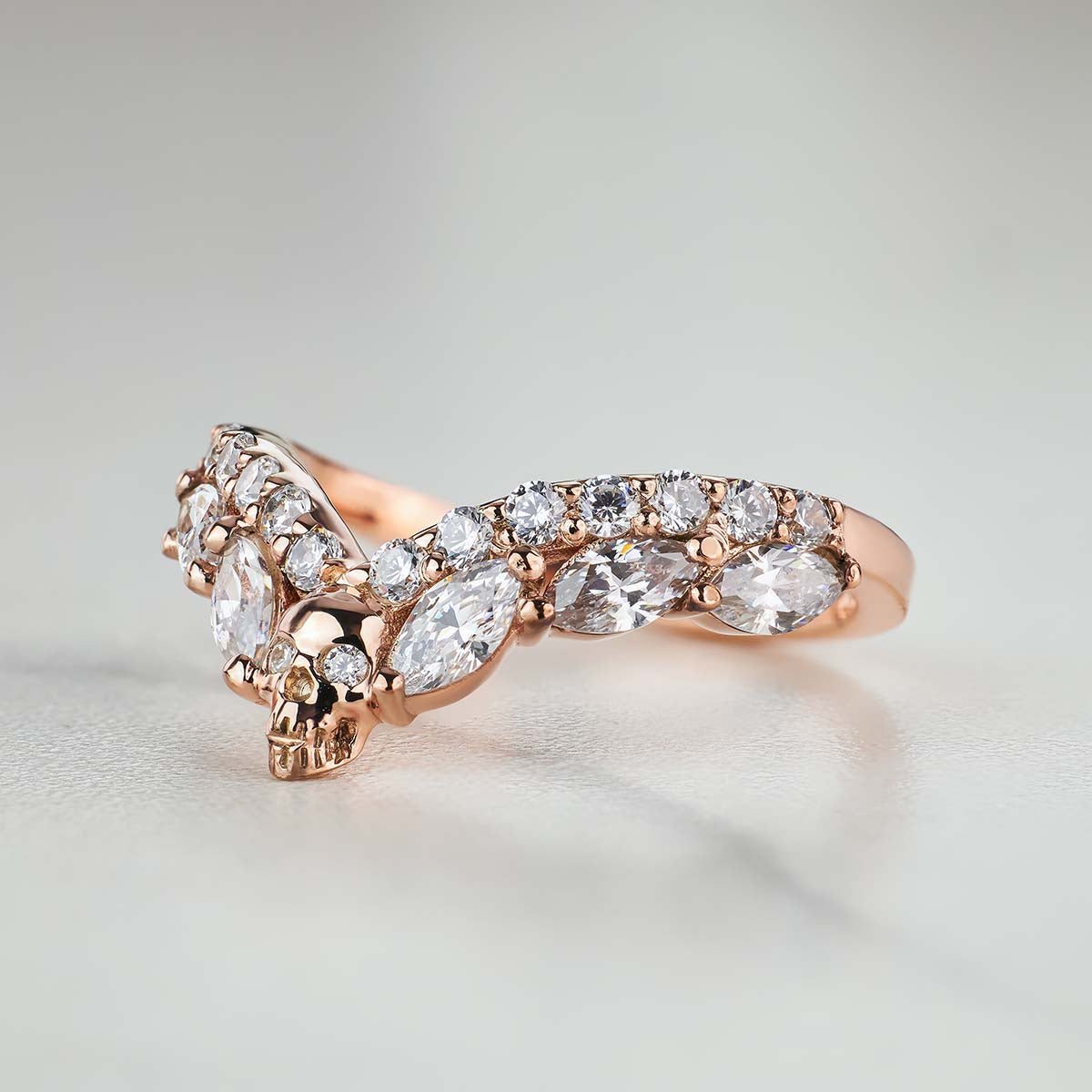 Moissanite Skull Ring Enhancer Curved Engagement Wedding Band Women Rose Gold
