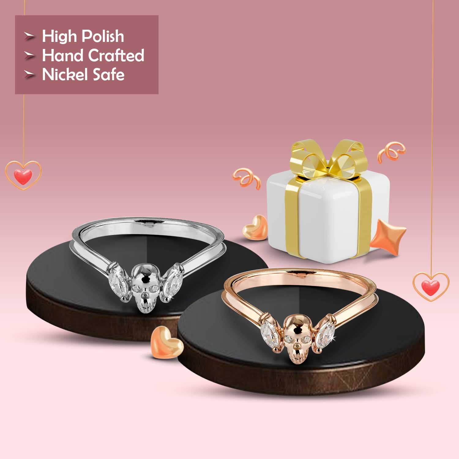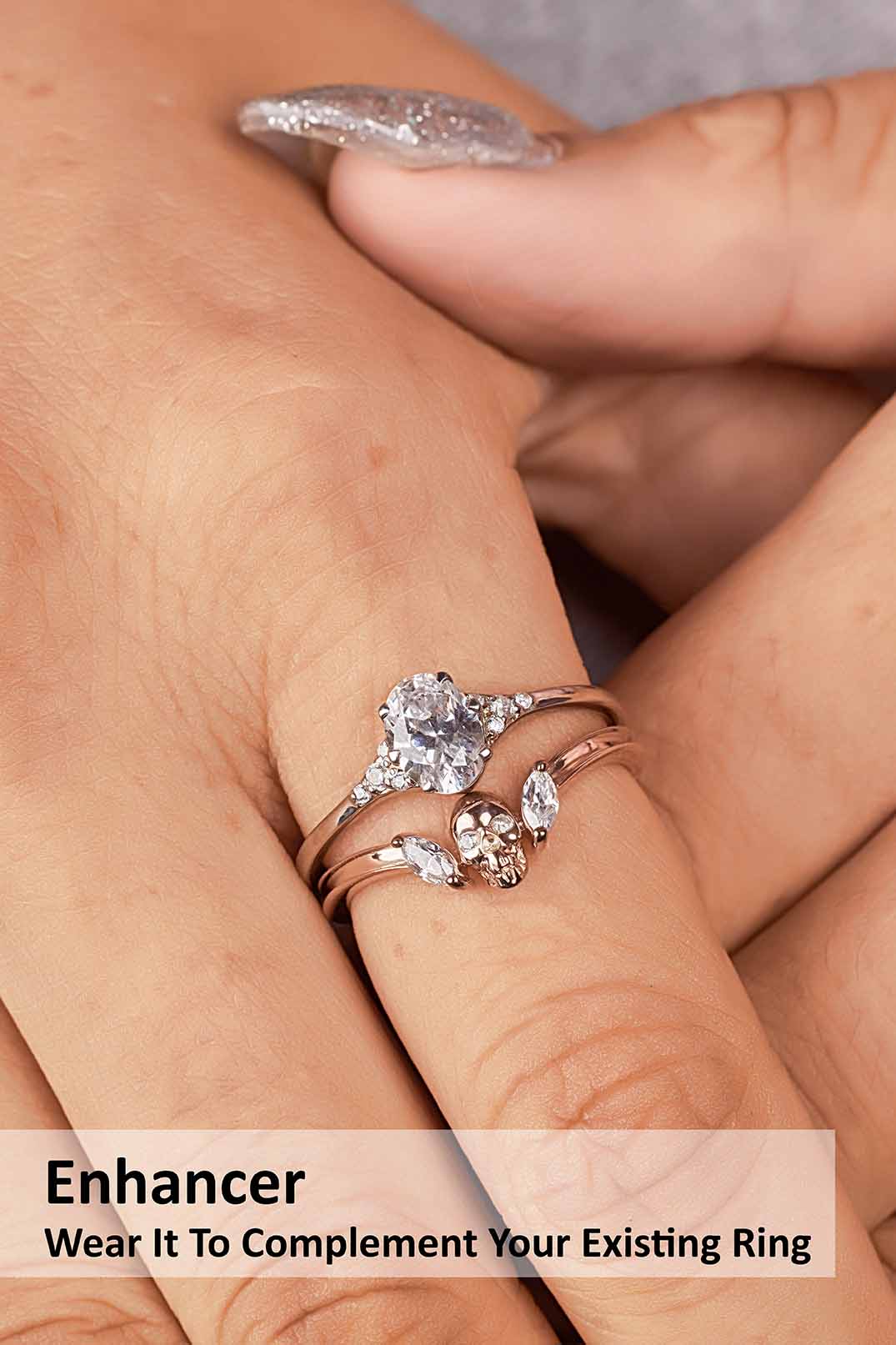 Learn moreMoissanite Skull Ring Enhancer Engagement Gothic Curved Wedding Band Women's