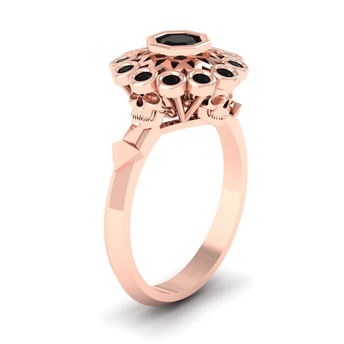 Octagon Onyx Skull Engagement Ring Gothic Skull Ring Womens