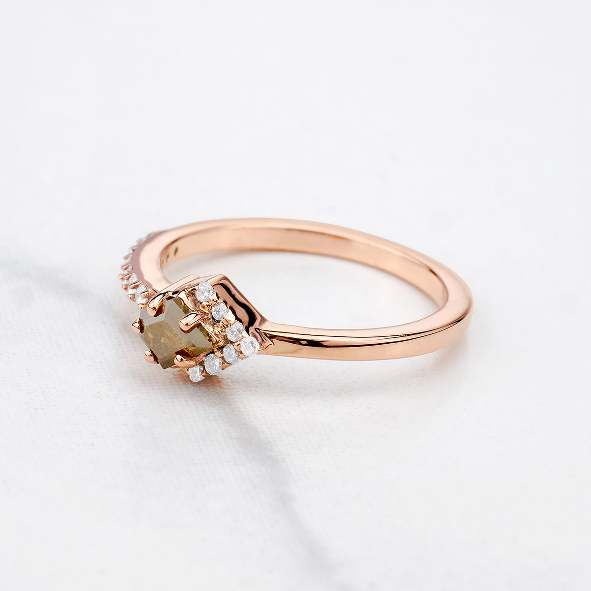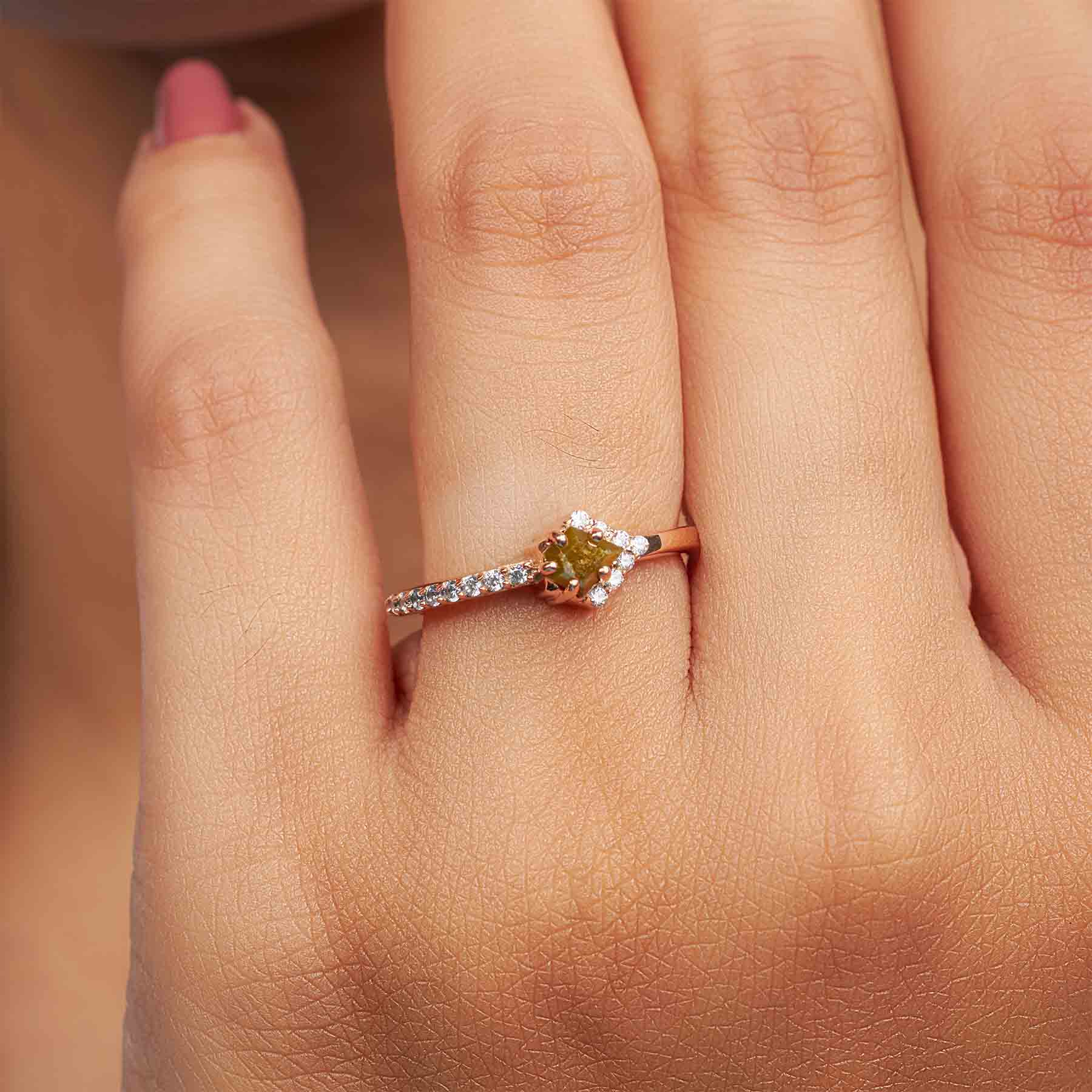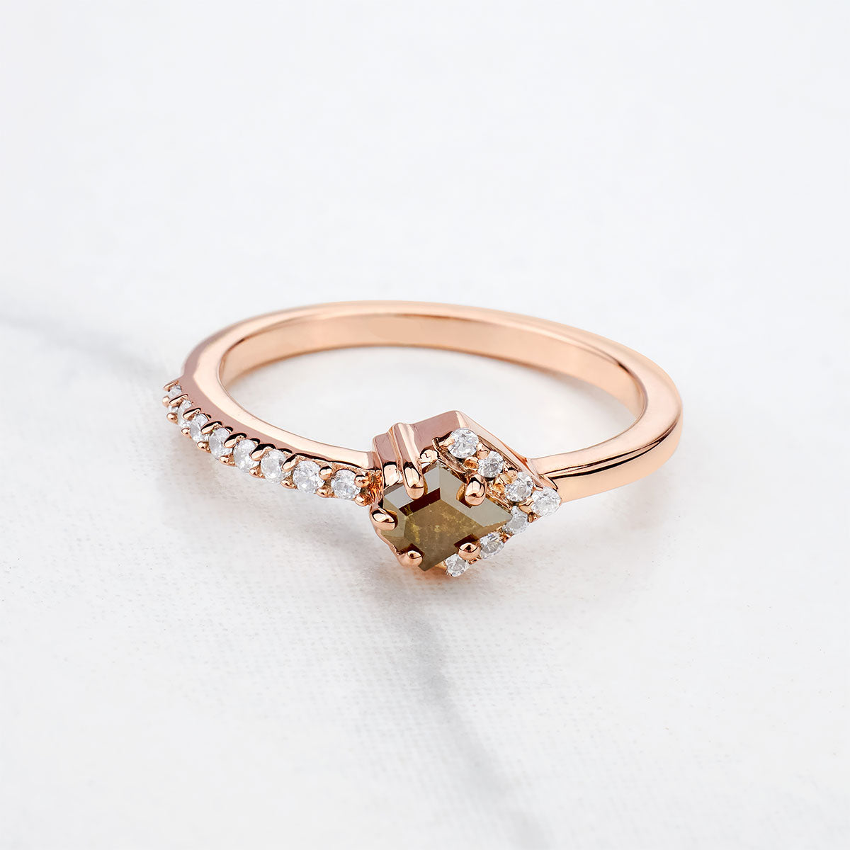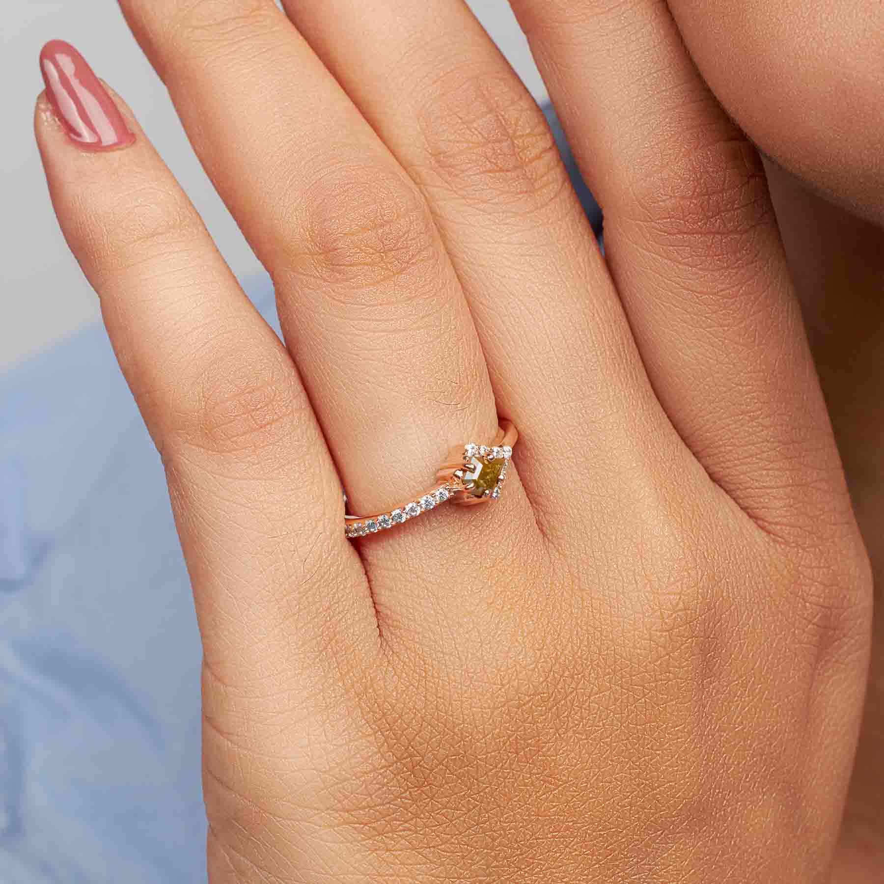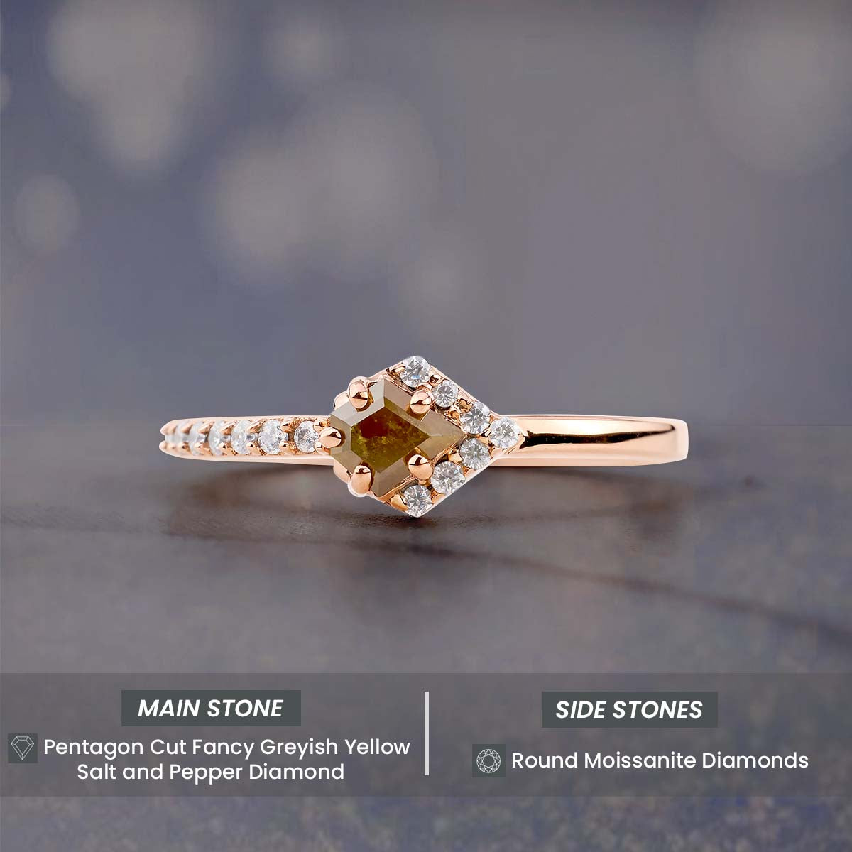 Learn morePentagon Cut Fancy Rustic Diamond Engagement Ring Rose Gold