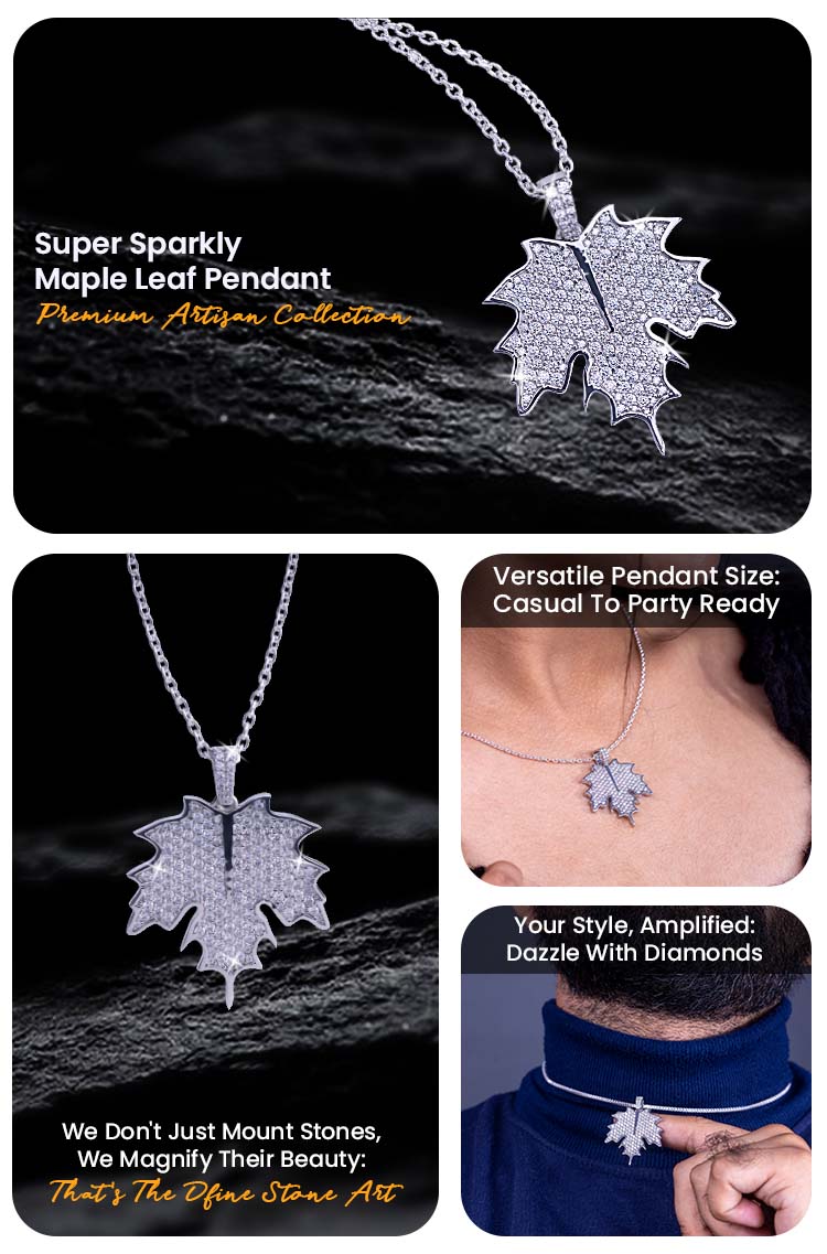 Learn moreMaple Leaf Pendant Necklace Moissanite Iced Out Autumn Jewelry