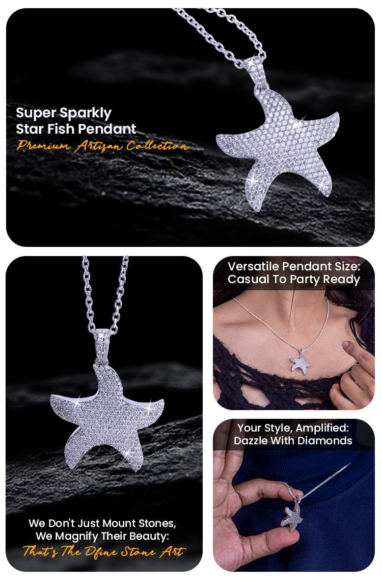 This iced-out starfish pendant is gorgeous! Customer service was super friendly and answered all my questions quickly. highly recommend.