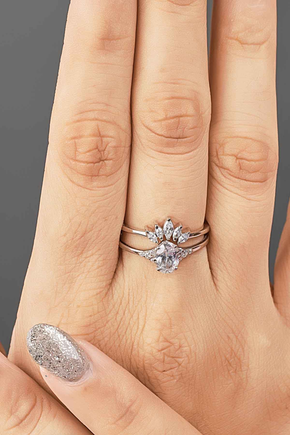 Learn moreTiara Wedding Band Marquise Cut AAA CZ Engagement Ring Enhancer