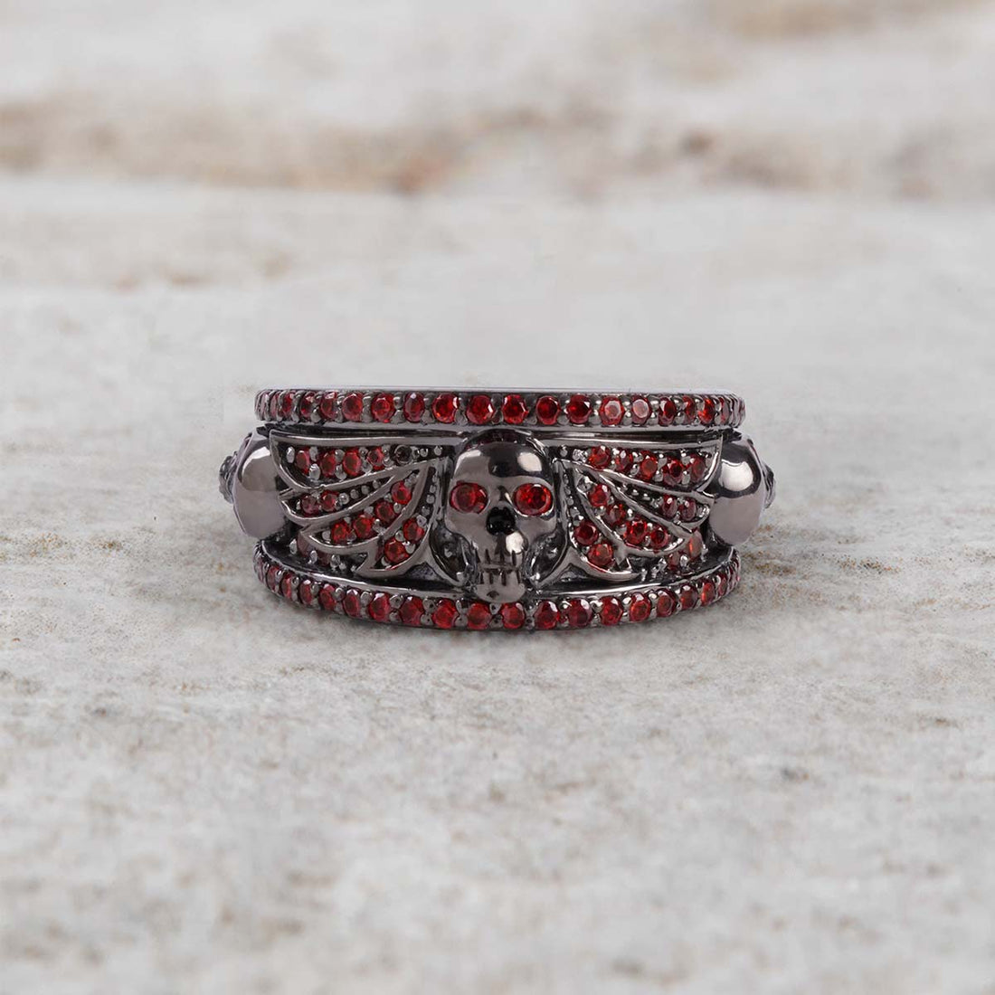 Women's Winged Skull Ring Natural Red Garnet Gothic Jewelry