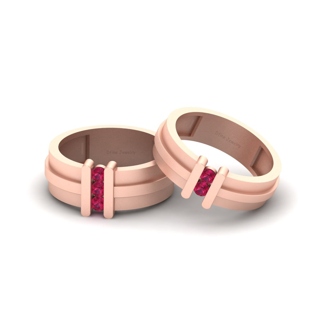 0.30TCW Ruby Engagement Bands His Her Matching Rose Gold