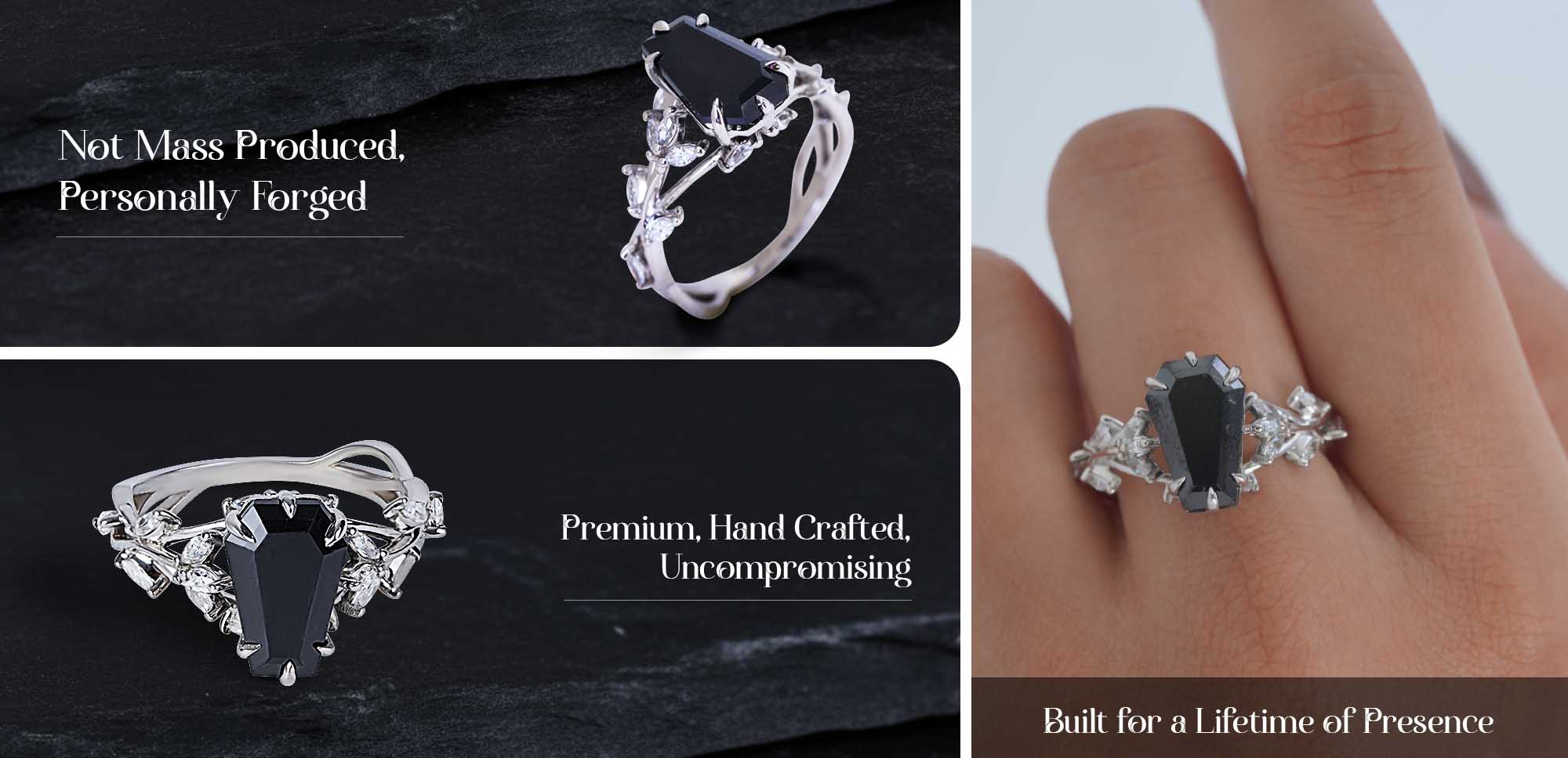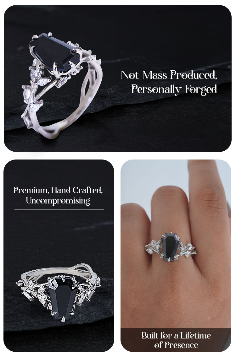 Black Moissanite Coffin Rings Dark Gothic Engagement Ring Silver