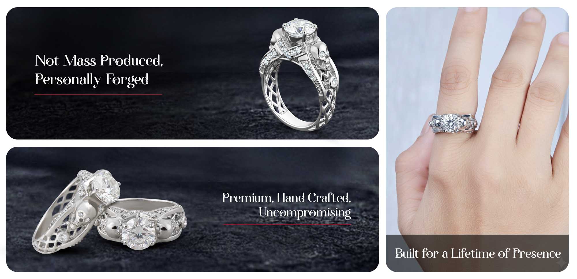 Diamond Skull Engagement Ring Mesh Gothic Skull Ring Womens