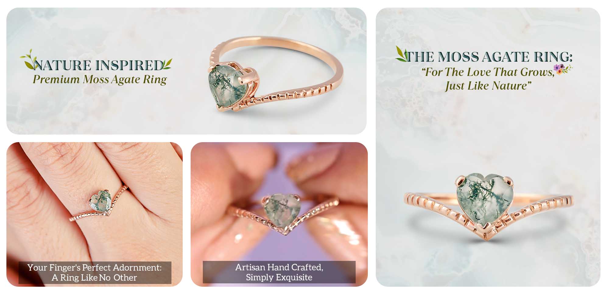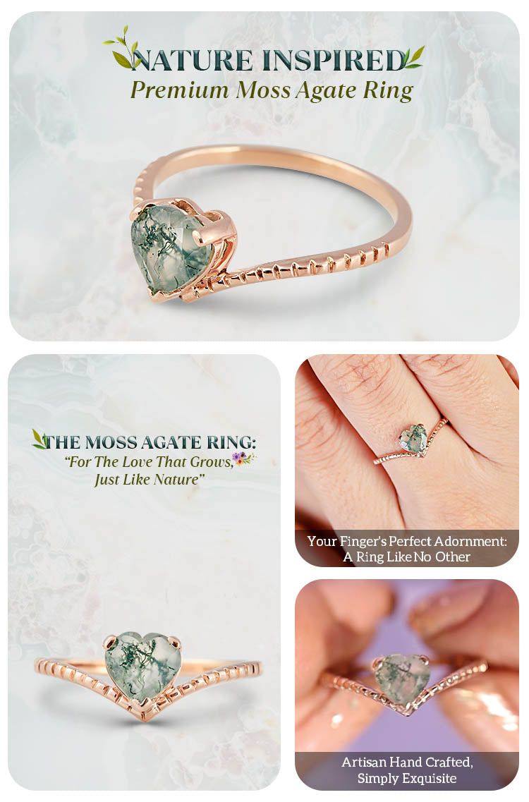 Heart Moss Agate Promise Ring Set 0.50ct Moss Agate Heart Ring