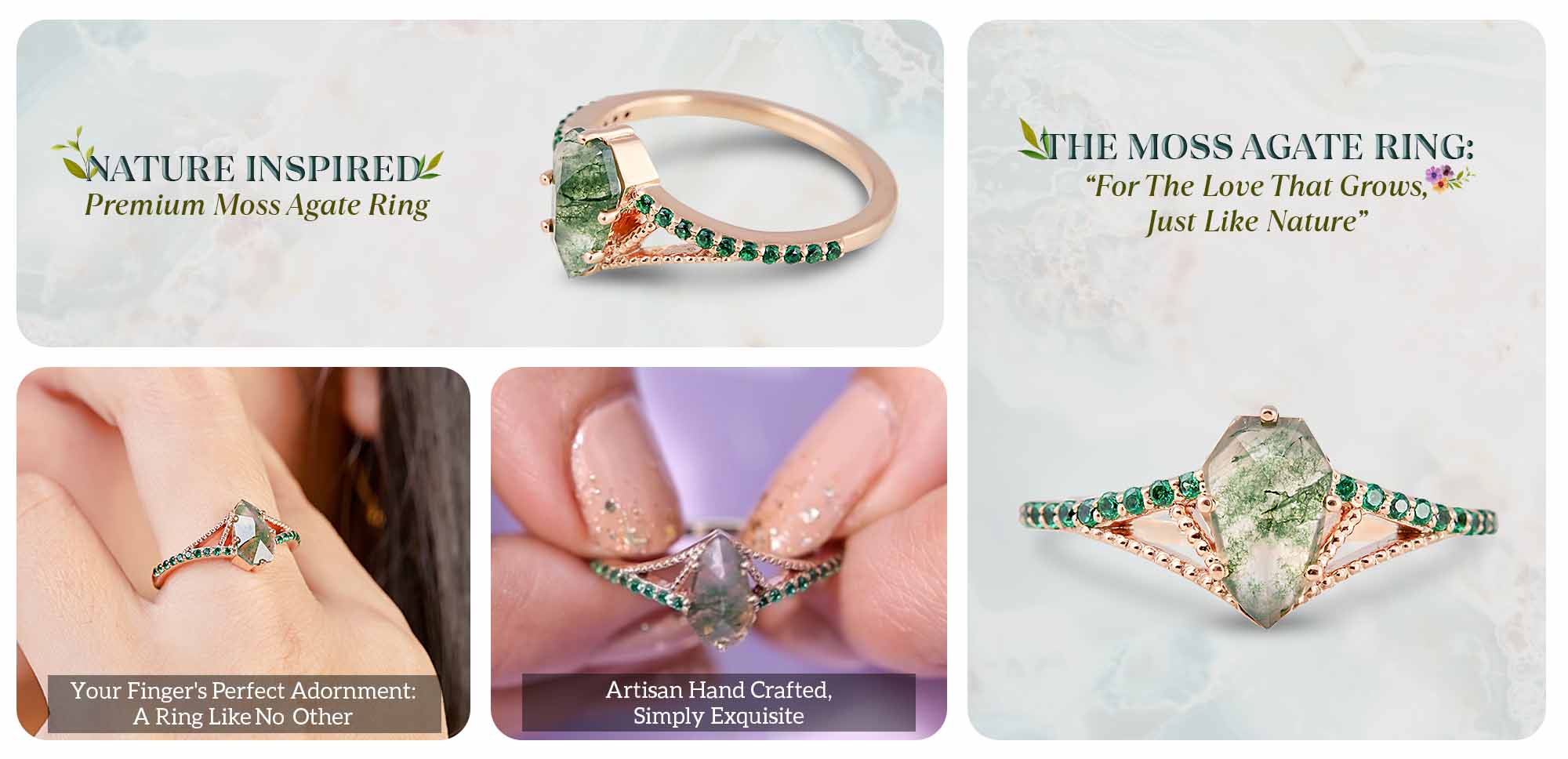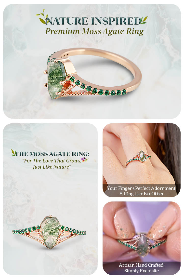 Learn moreNatural Moss Agate Engagement Ring Women Shield Rose Cut