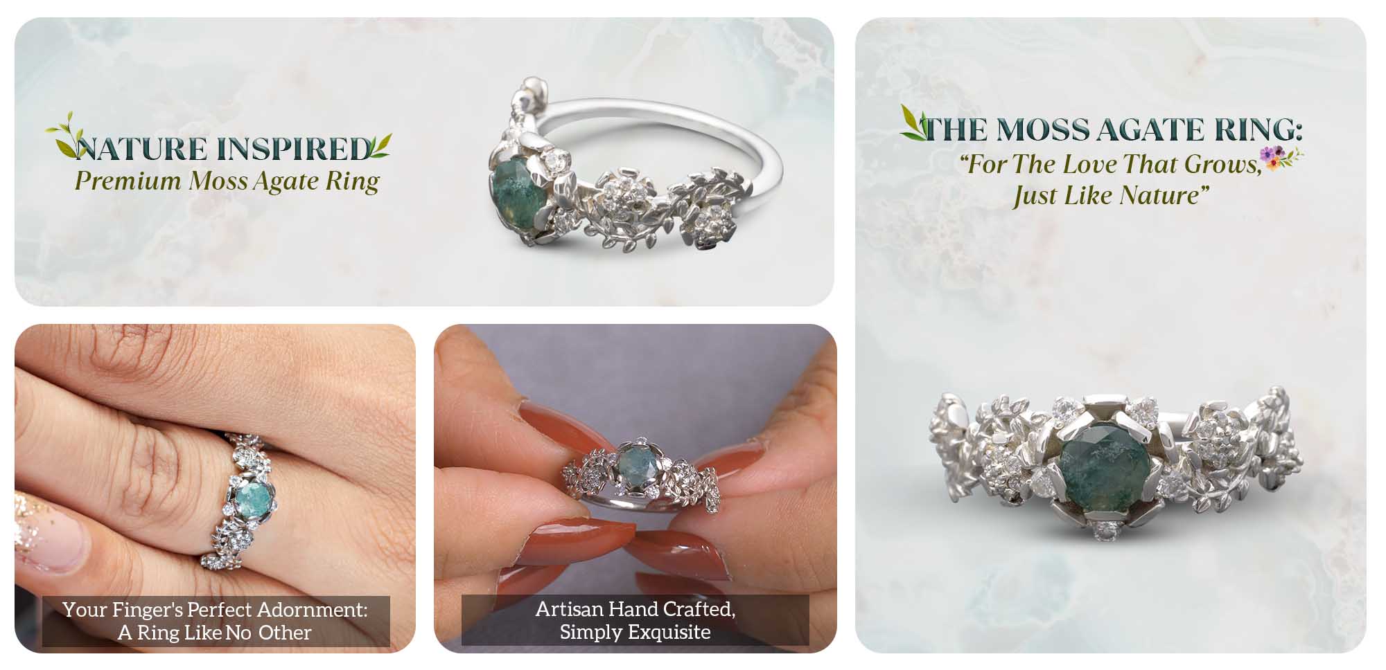 Learn moreNature Inspired Moss Agate Ring Cluster Diamond Flower Engagement Ring
