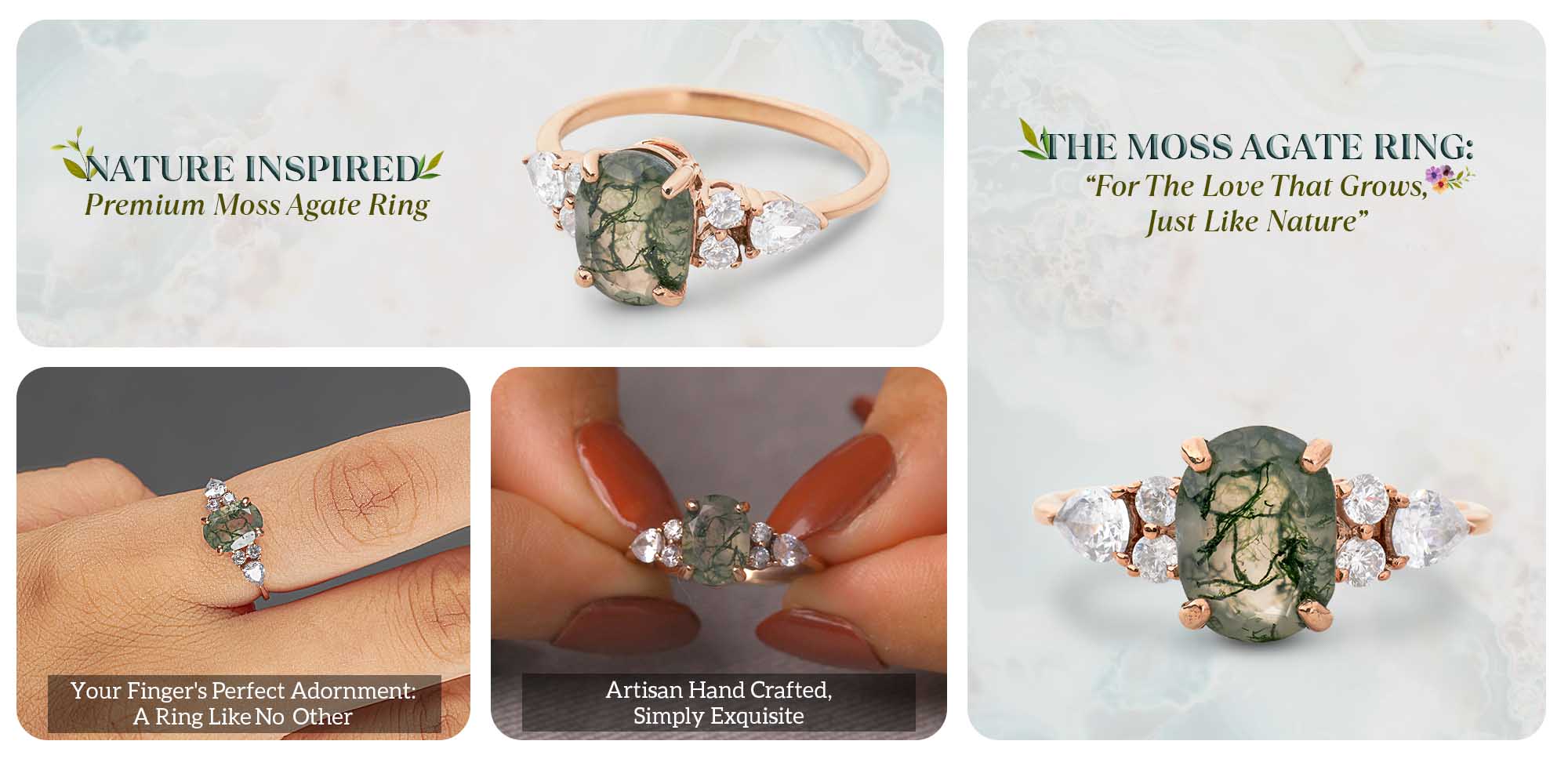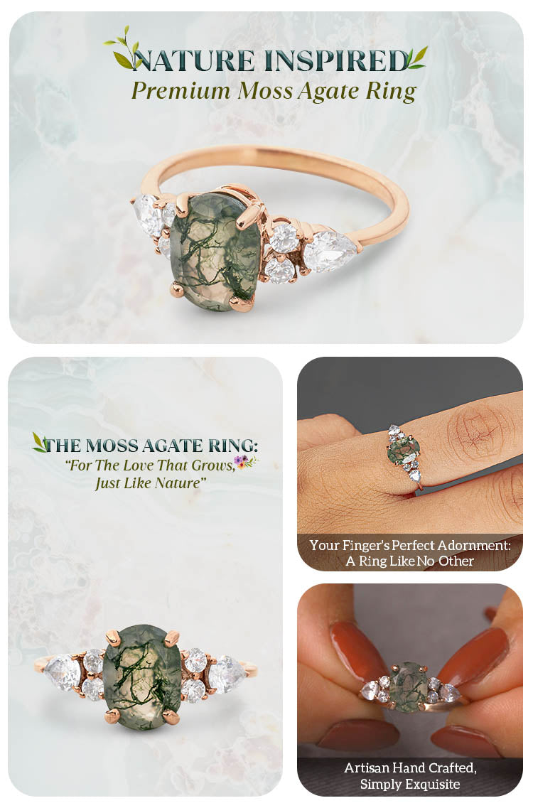 Learn moreOval Cut Moss Agate Engagement Ring Healing Gemstone Ring