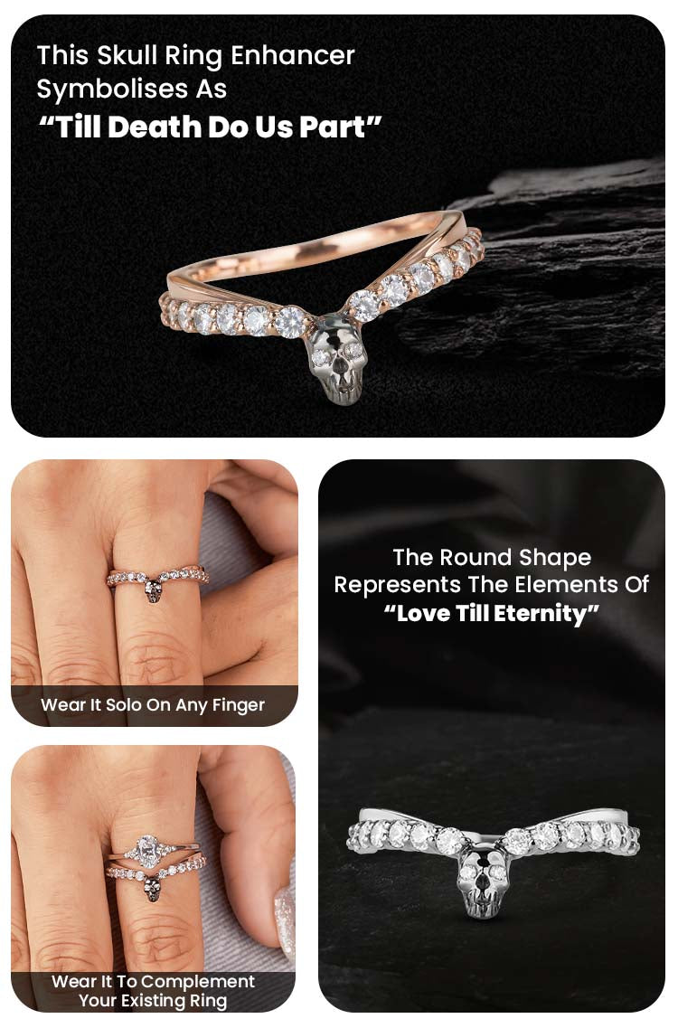 Skull Anniversary Ring Gift Curved Wedding Band Enhancer for Women AAA CZ