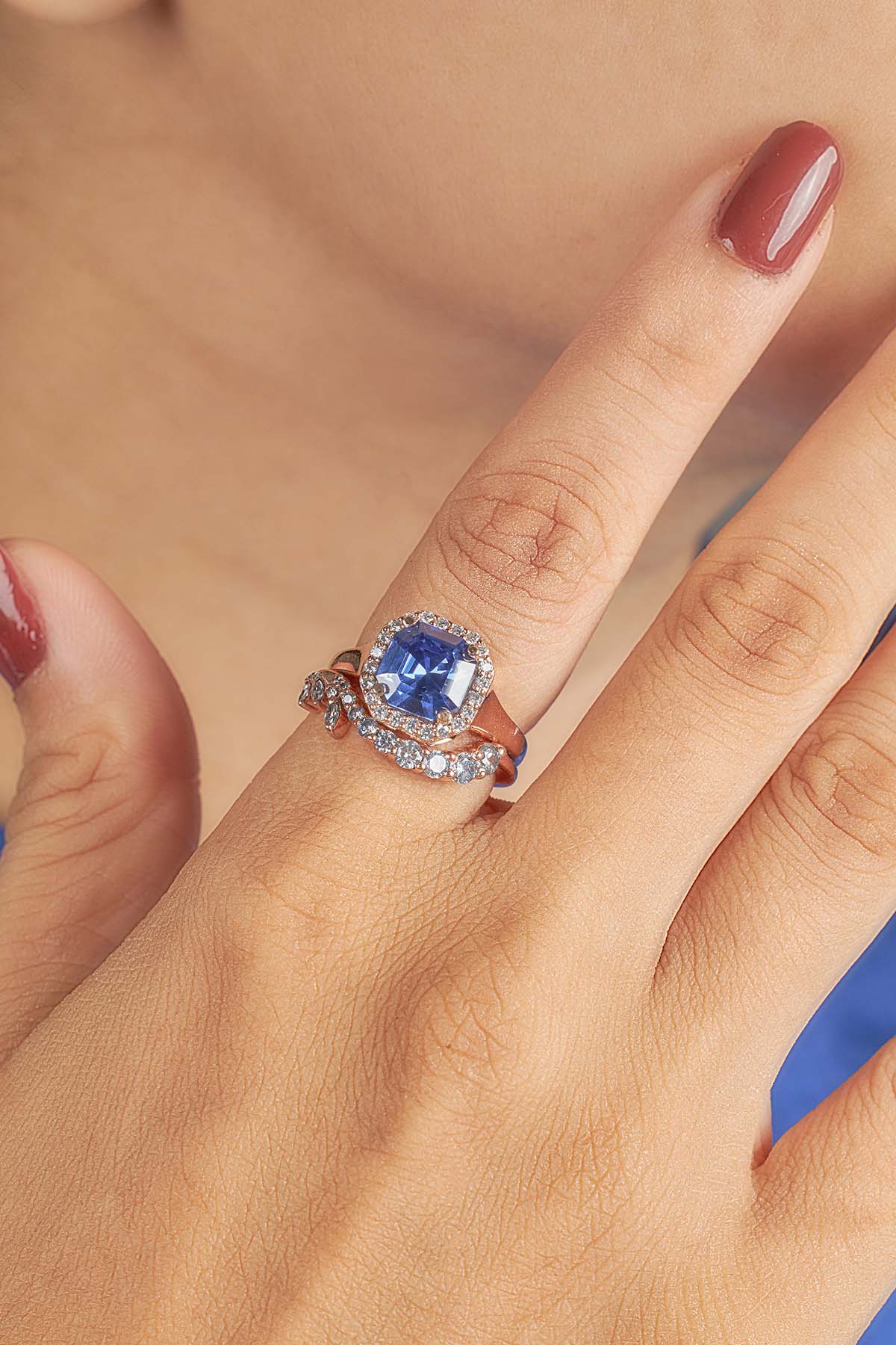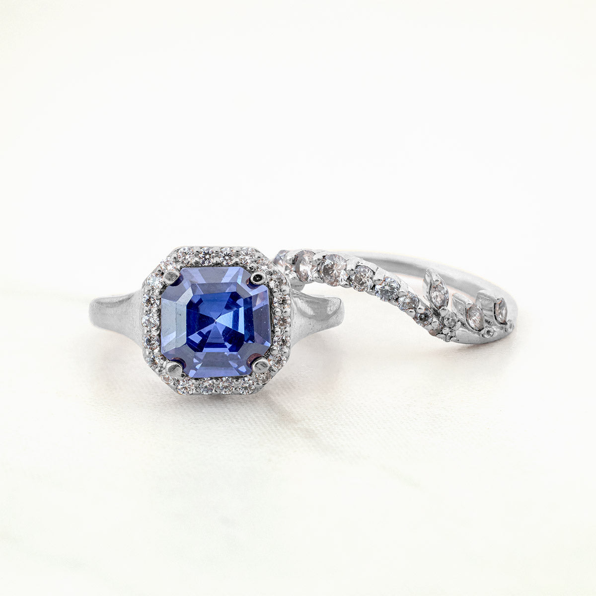 Statement Engagement Ring Set Blue Titanic Gemstone Halo
