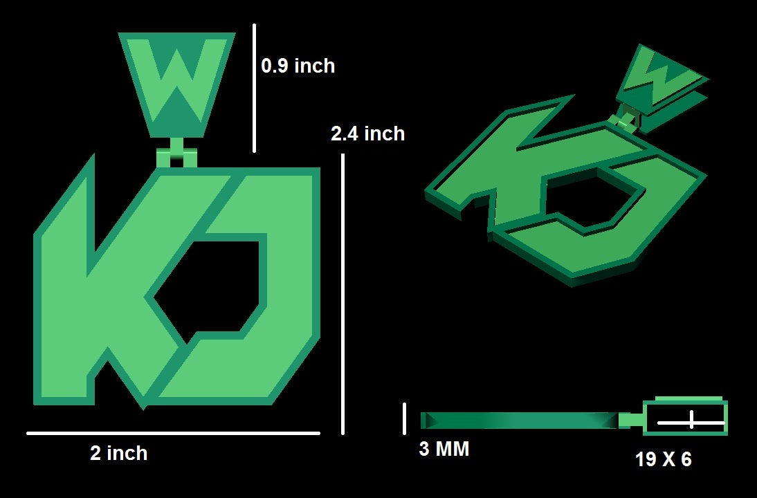 Sterling Silver KJ Pendant with Red and White Cubic Zirconia Diamonds Custom Jewelry