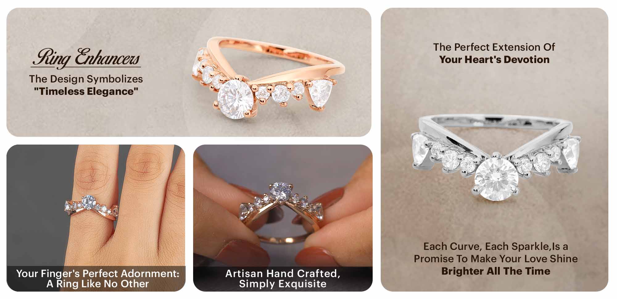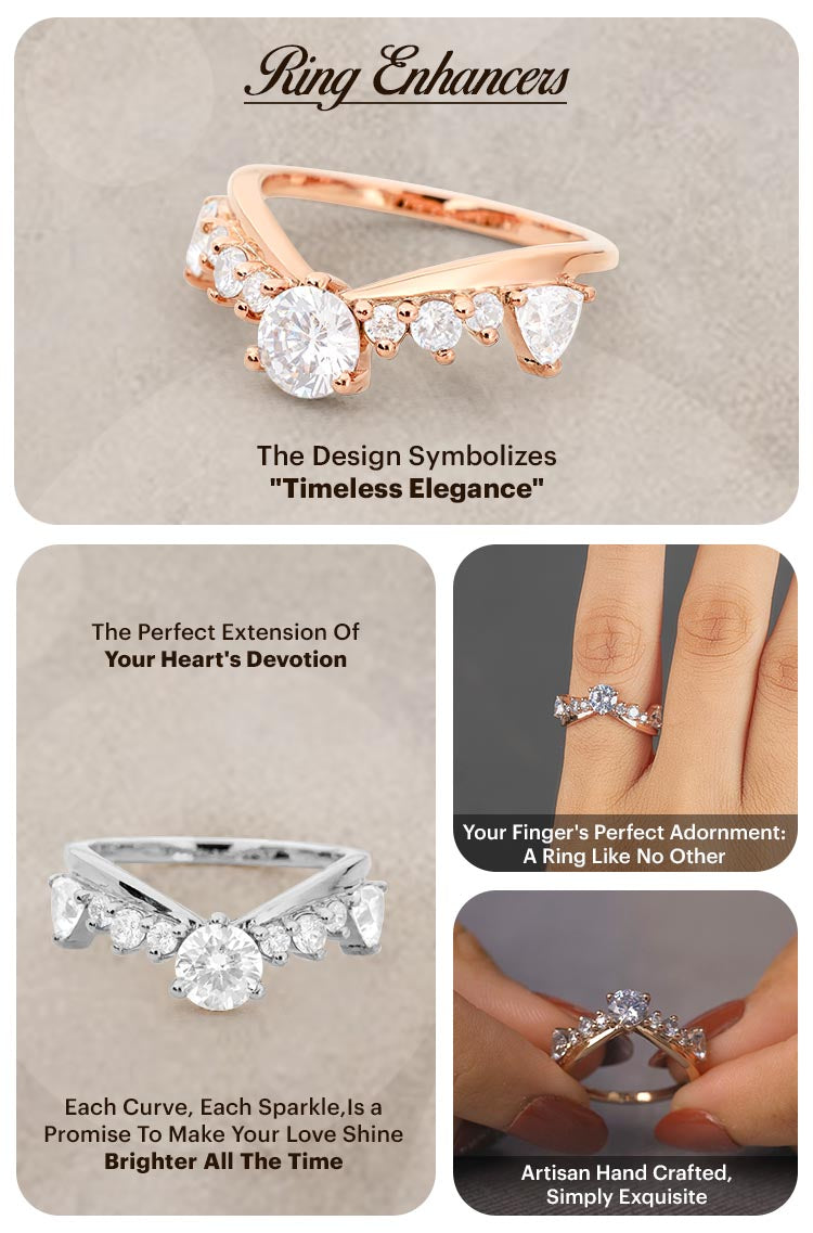 Moissanite Enhancer Ring Rose Gold Stack Curved Wedding Band