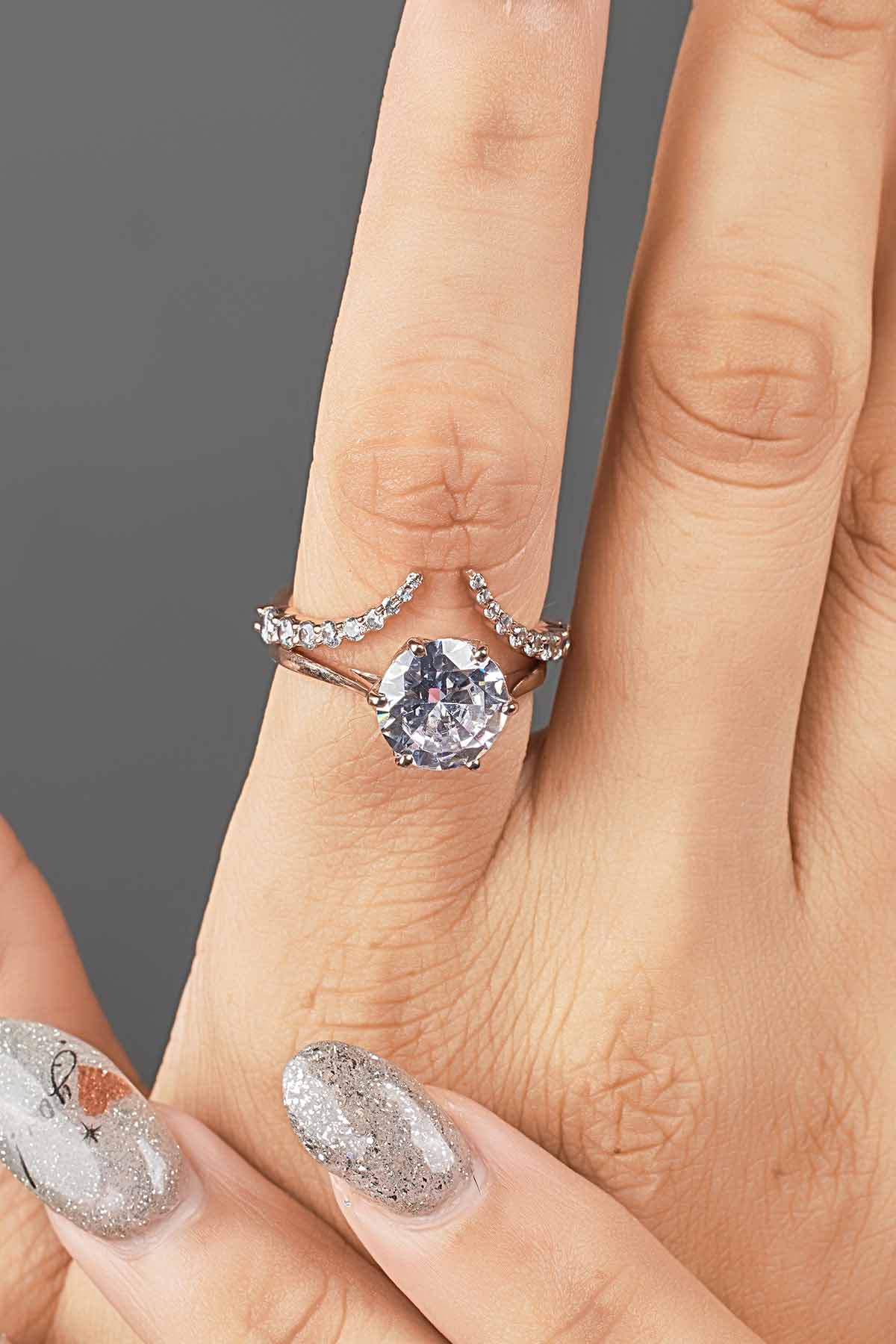 Learn moreOpen Ring Enhancer Stacking Ring Guard Round CZ Wedding Band Rose Gold Silver