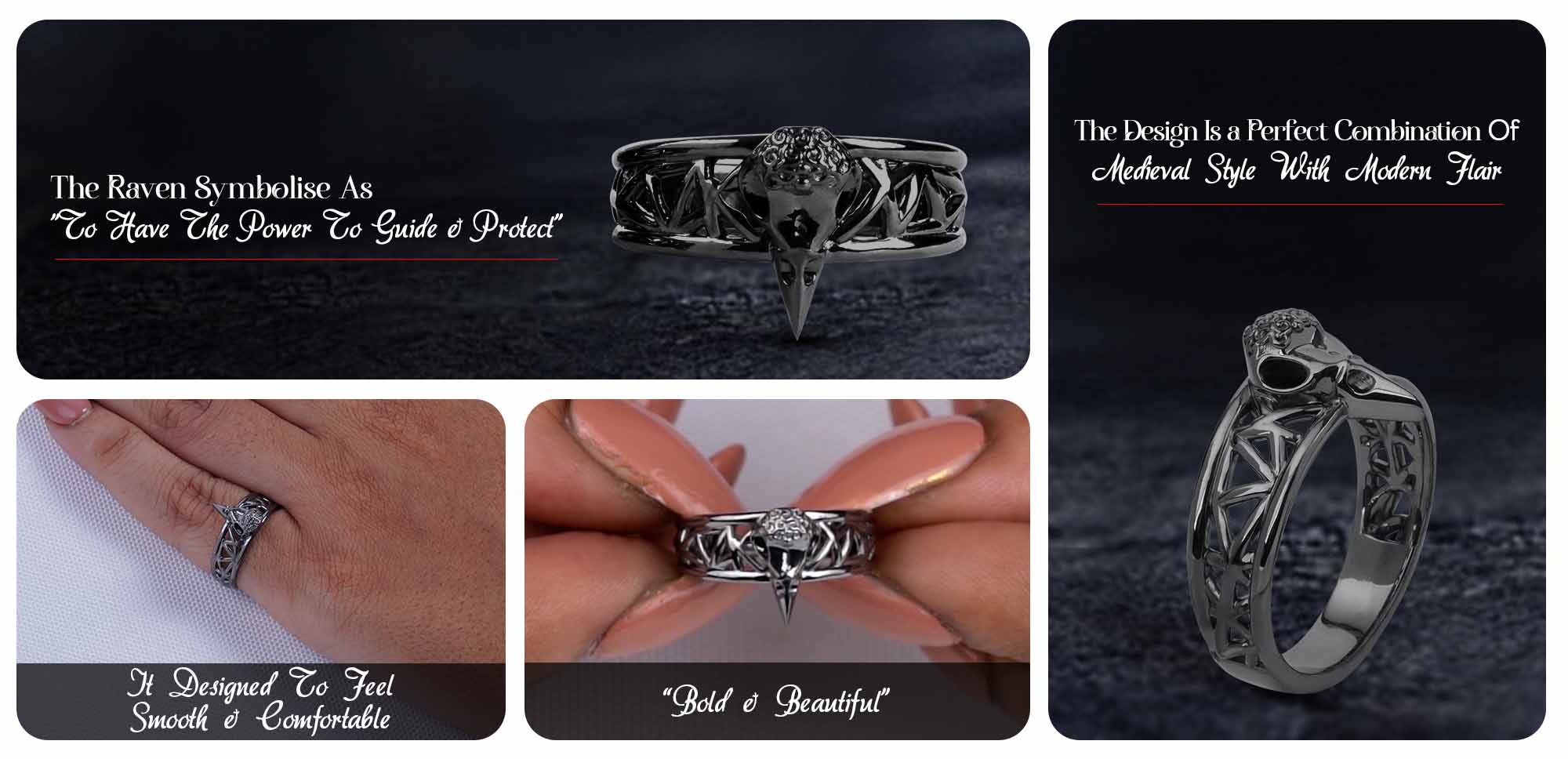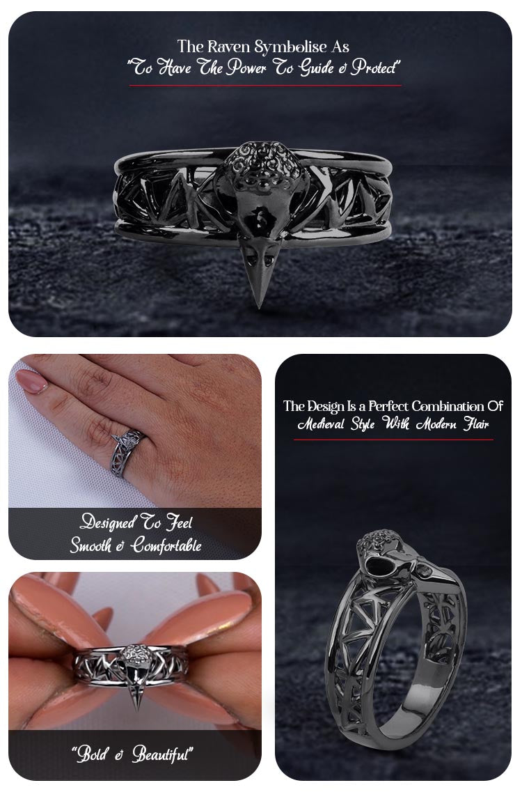 Learn moreRaven Skull Ring for Women Norse Viking Jewelry Sterling Silver Gun Metal Finish