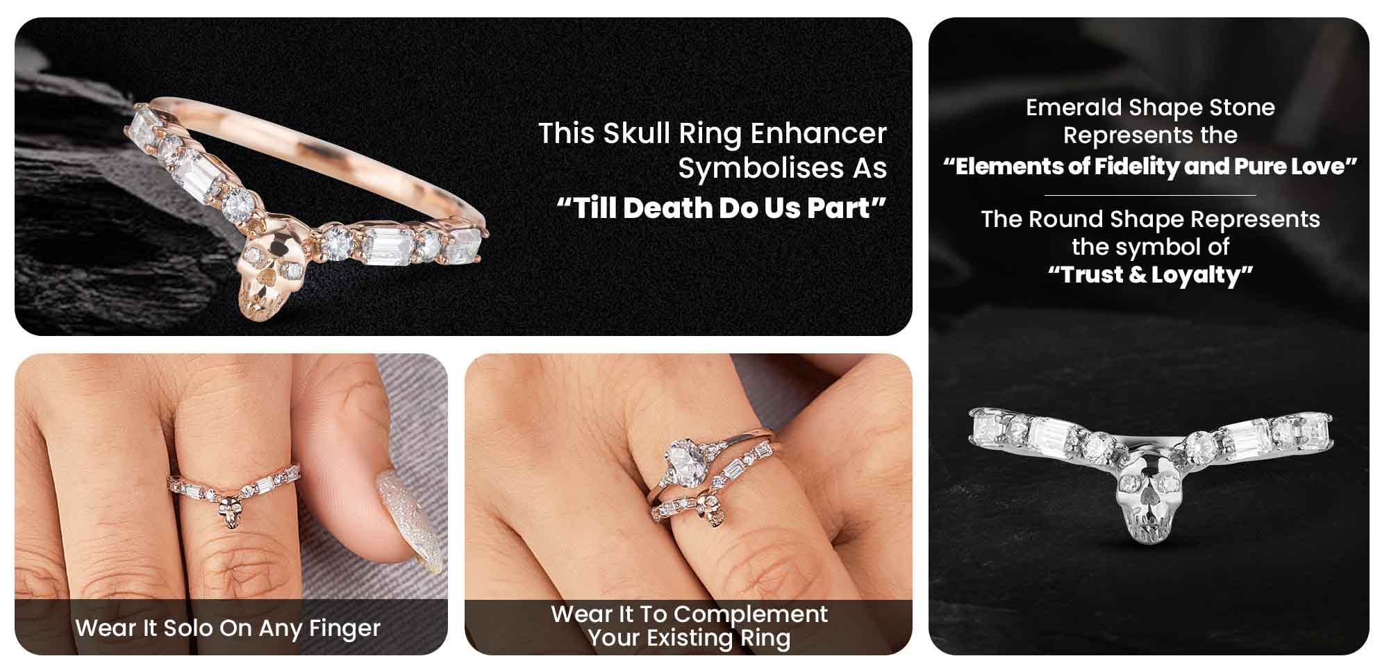 Skull Wedding Ring Enhancer AAA CZ Gothic Engagement Ring for Women