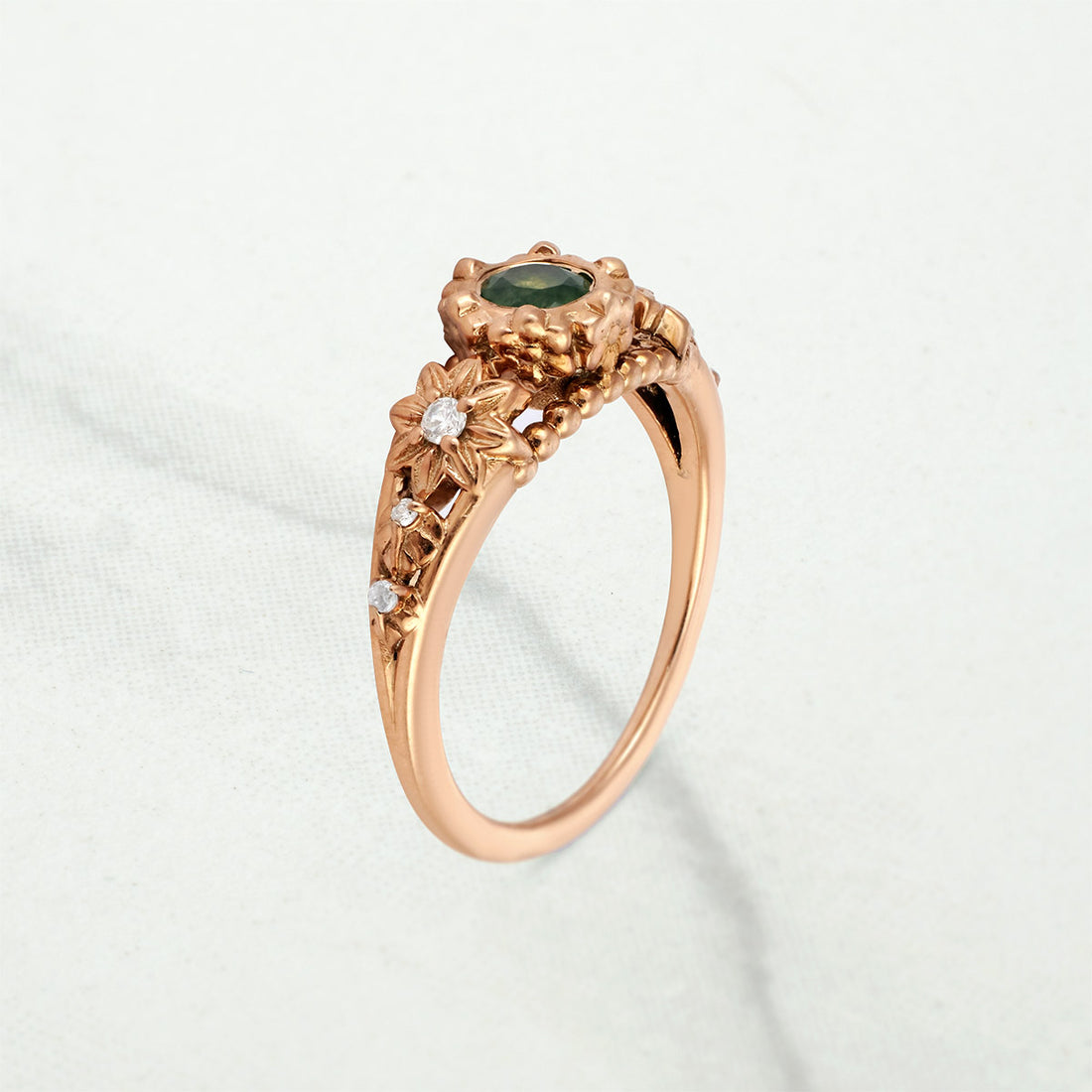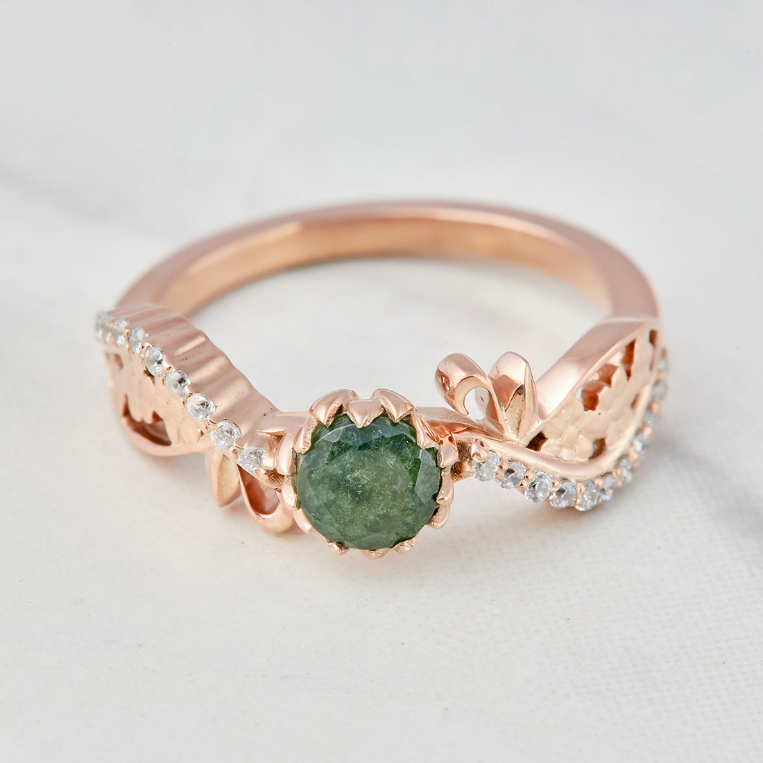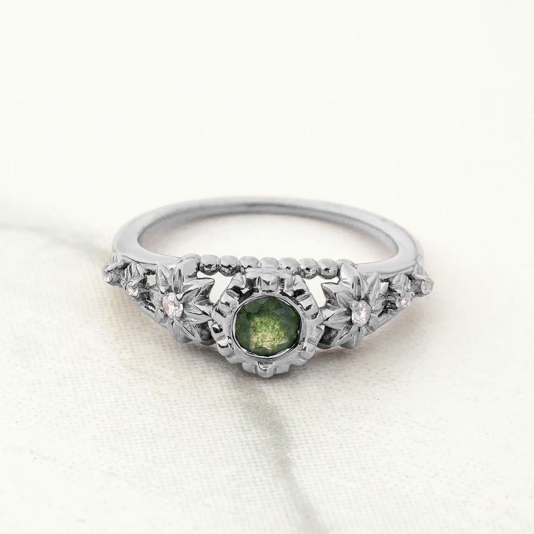 Green Moss Agate Engagement Ring Floral Flower Nature Inspired