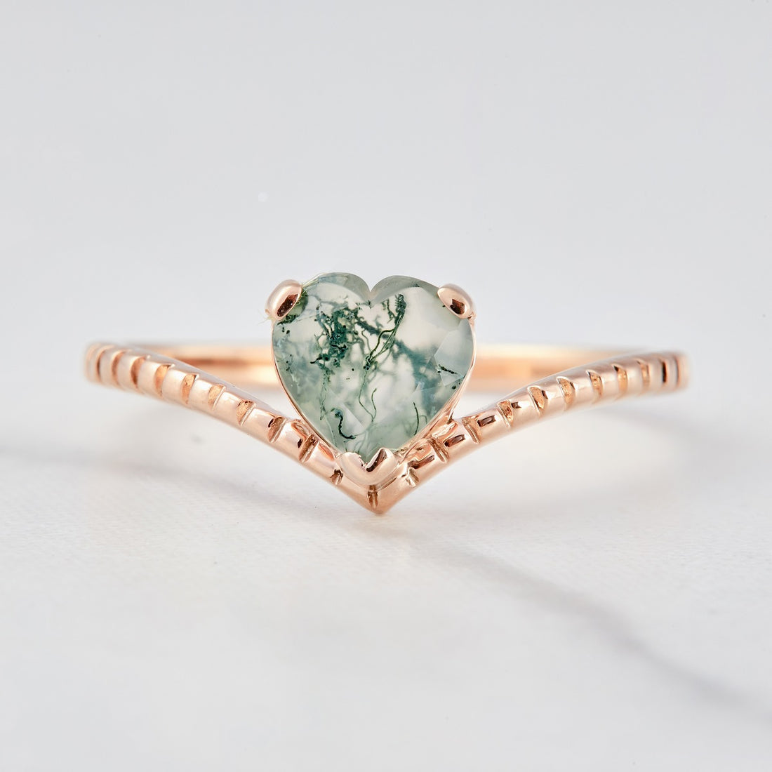 Heart Moss Agate Ring Healing Gemstone Rose Gold Promise Ring