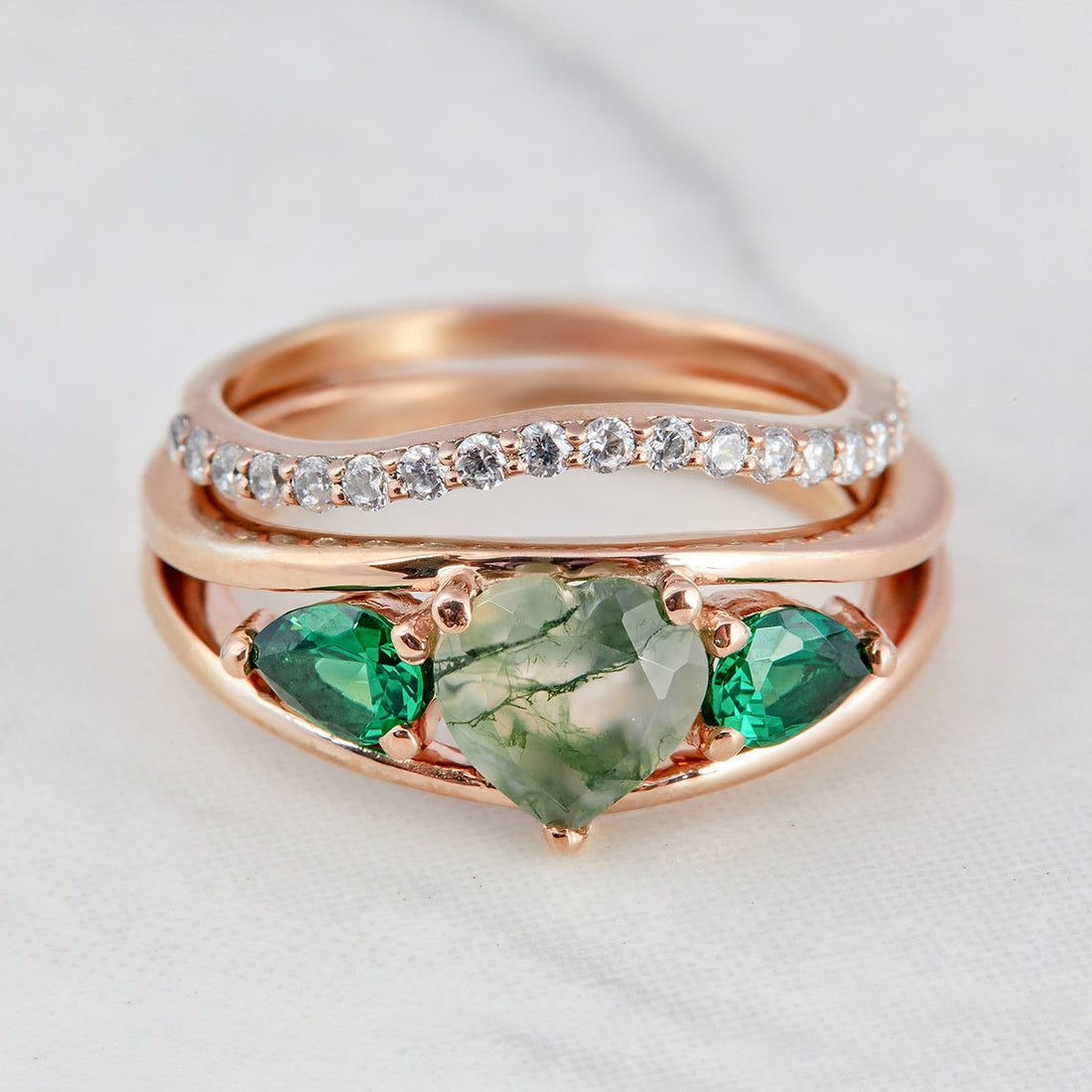 Moss Agate Promise Ring Set Heart Moss Agate Ring Rose Gold