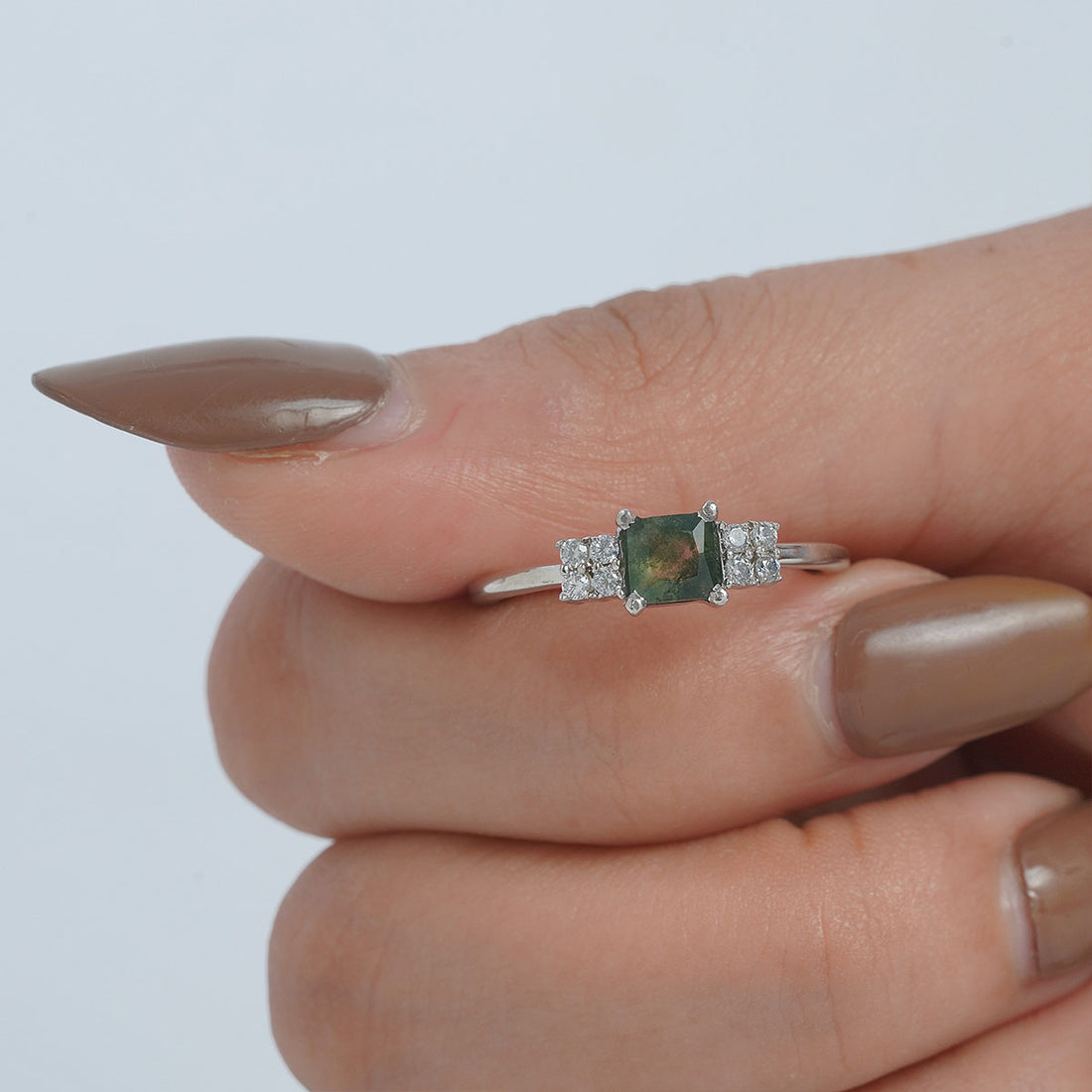 Flower Engagement Ring Womens Princess Cut Natural Moss Agate