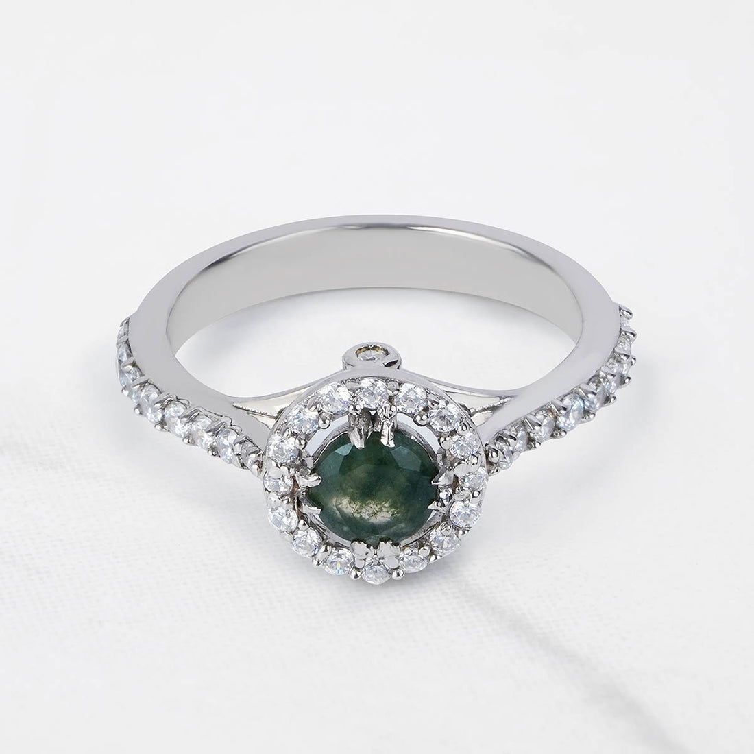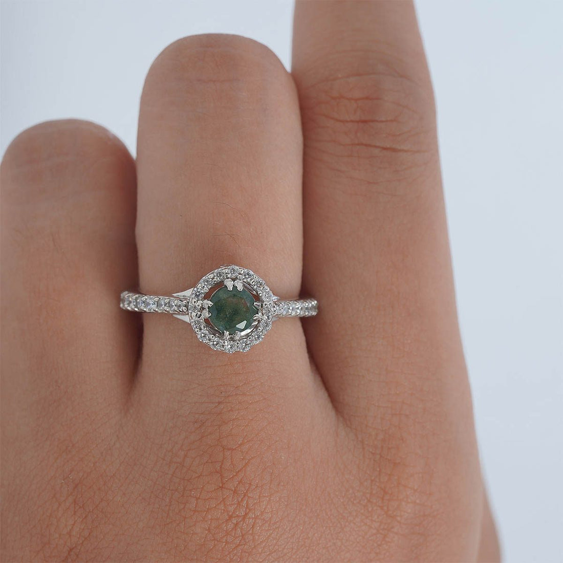 Halo Moss Agate Ring Nature Inspired Womens Engagement Ring