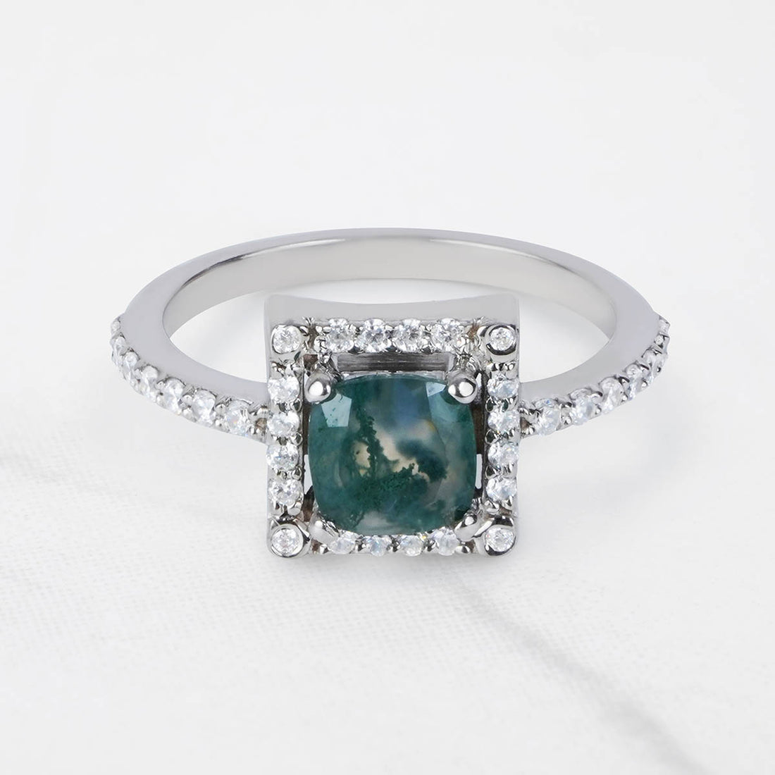 SPECIFICATION Halo Moss Agate Engagement Ring Captures The Essence of Nature’s Beauty and Often Favored...
