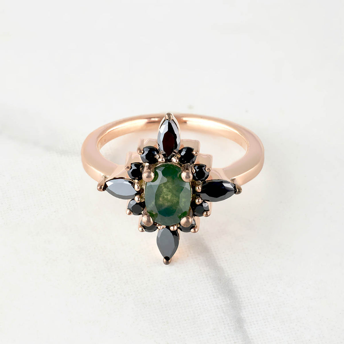 Kite Moss Agate Ring 14k Rose Gold Statement Engagement Ring