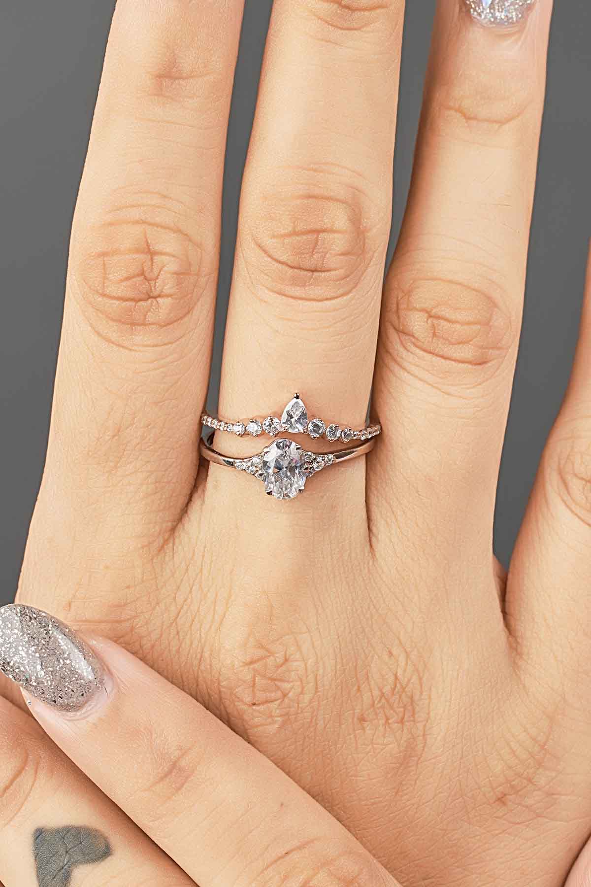 Curved Enhancer Wedding Band AAA CZ Diamond Engagement Ring Art Deco