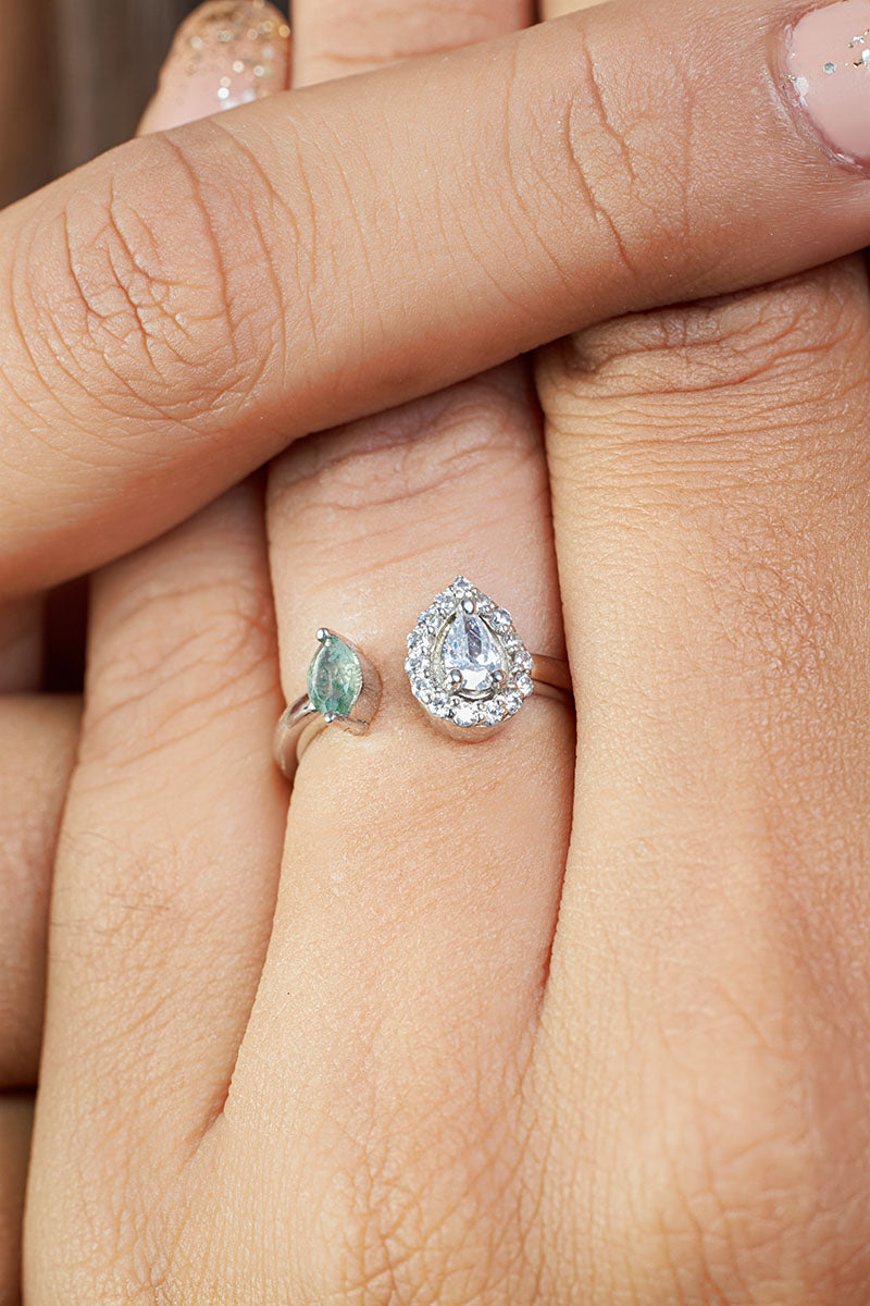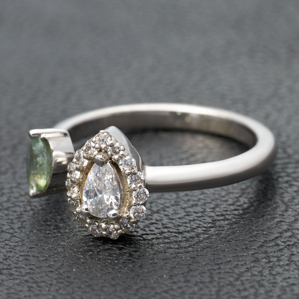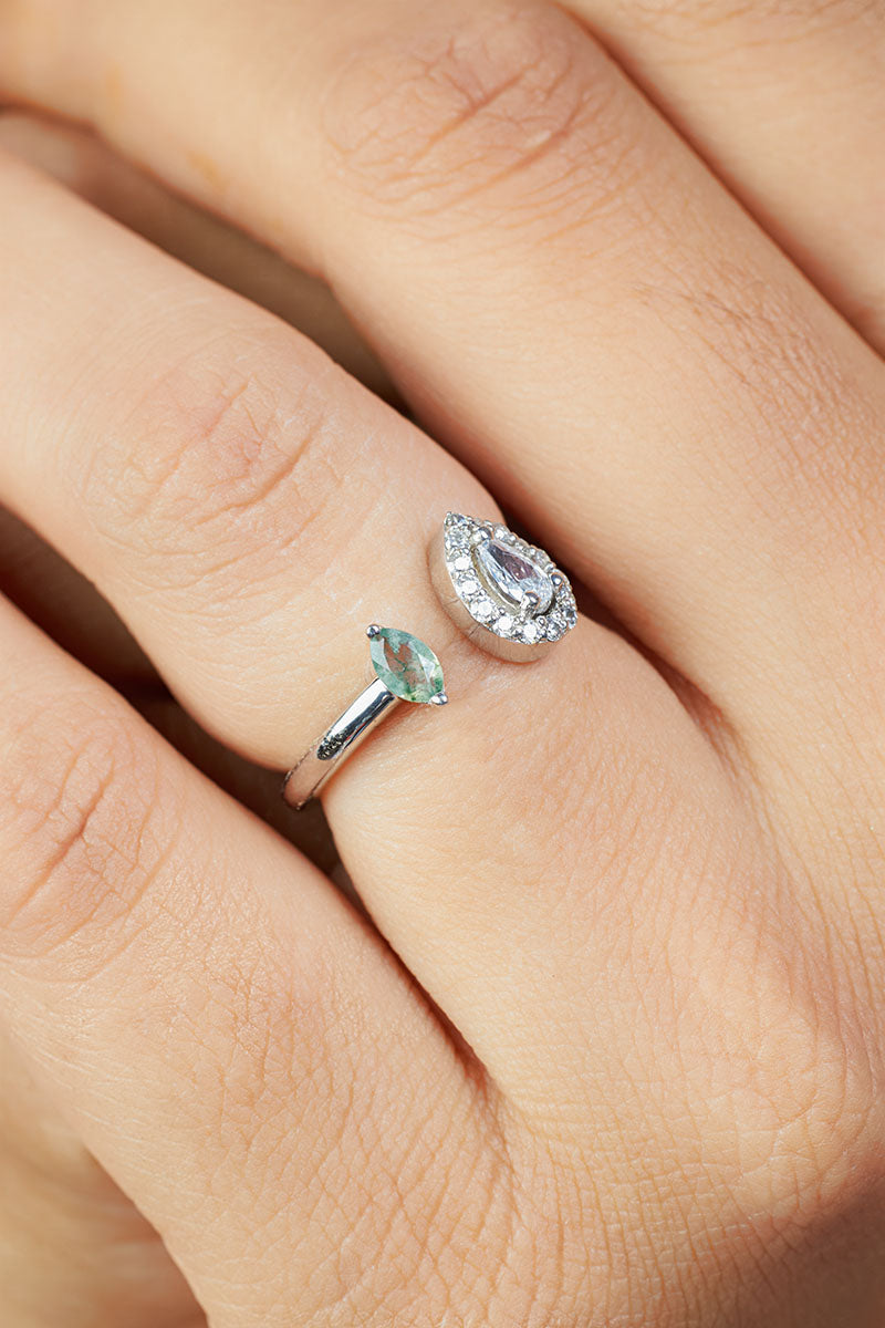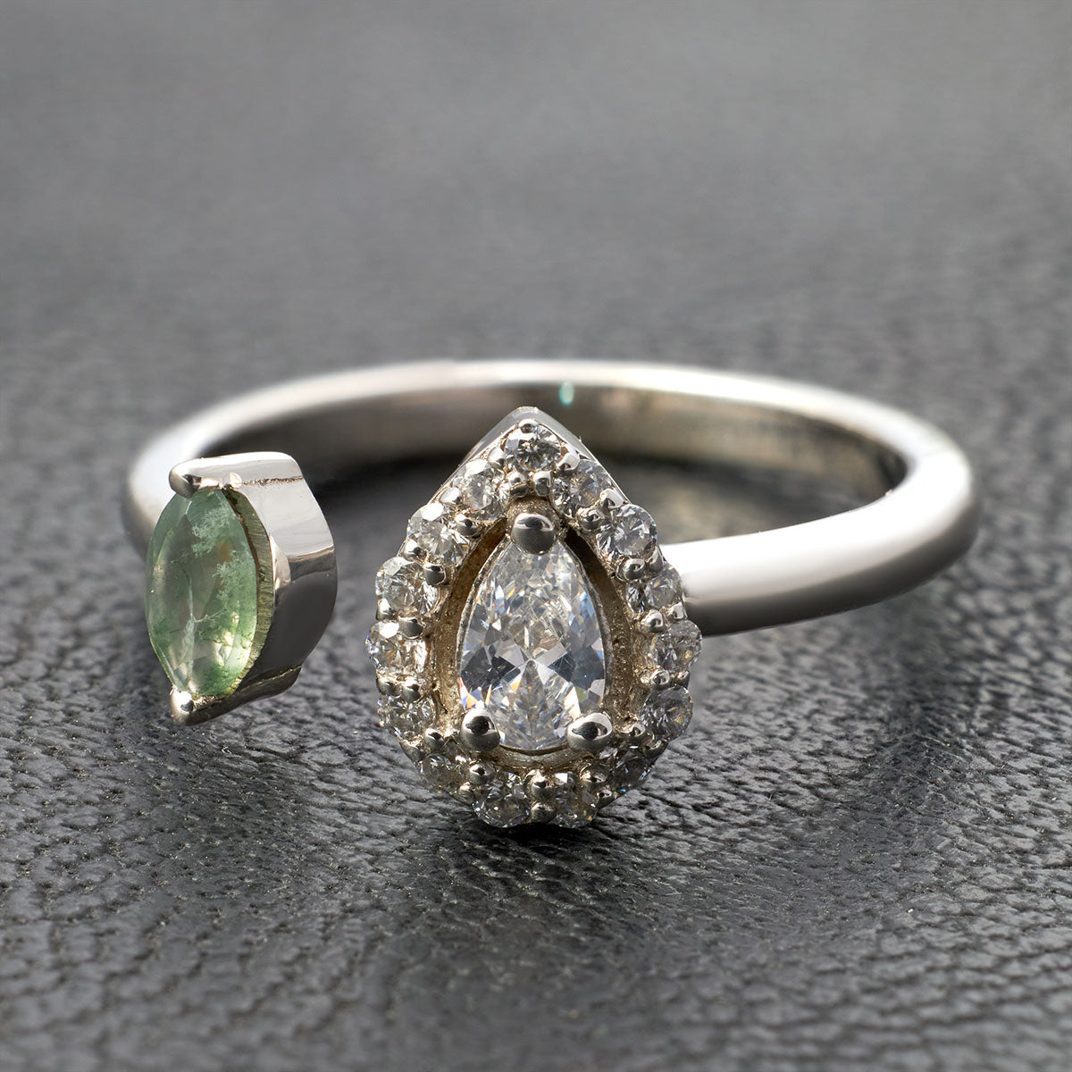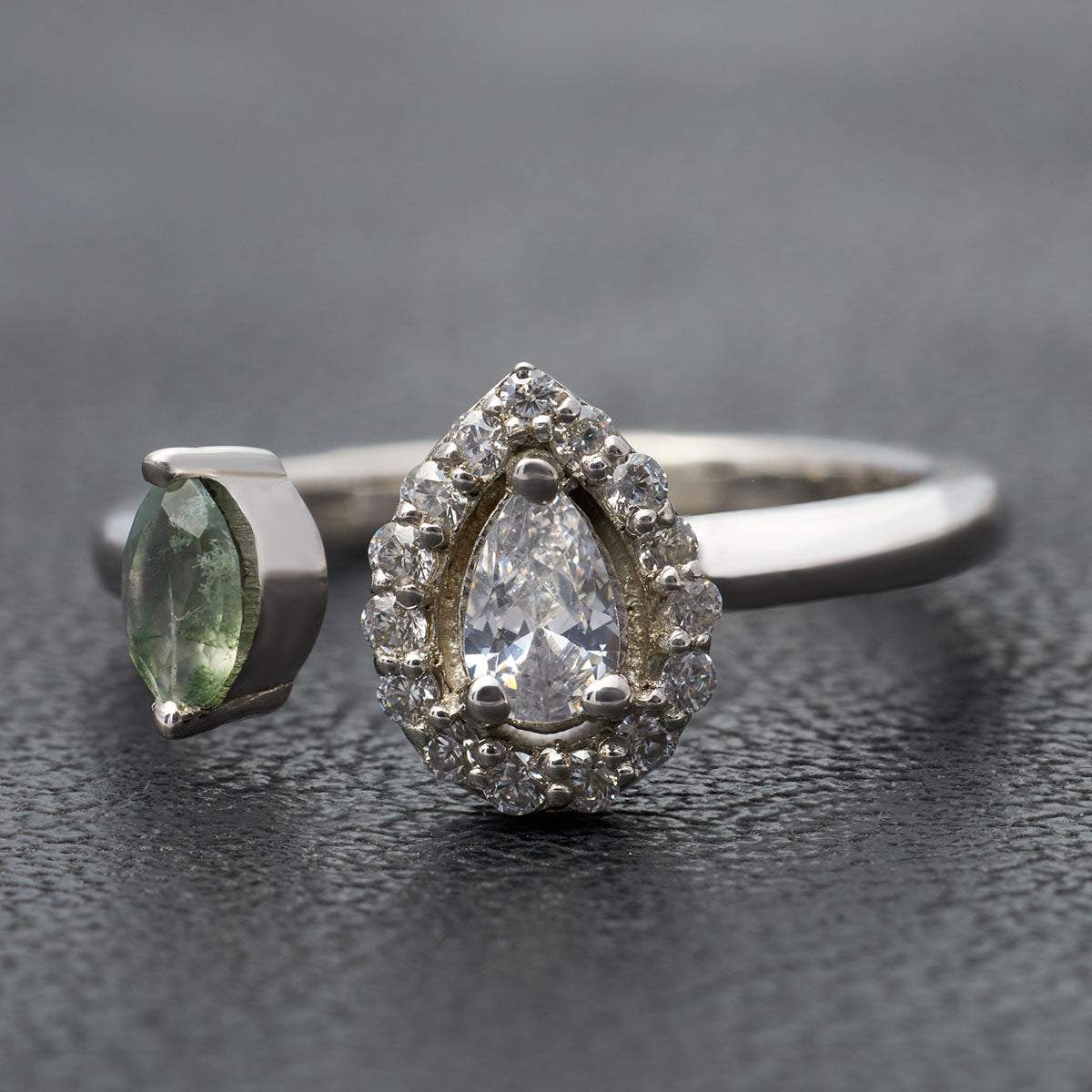 Diamond and Moss Agate Engagement Ring Toi Et Moi Rings Silver