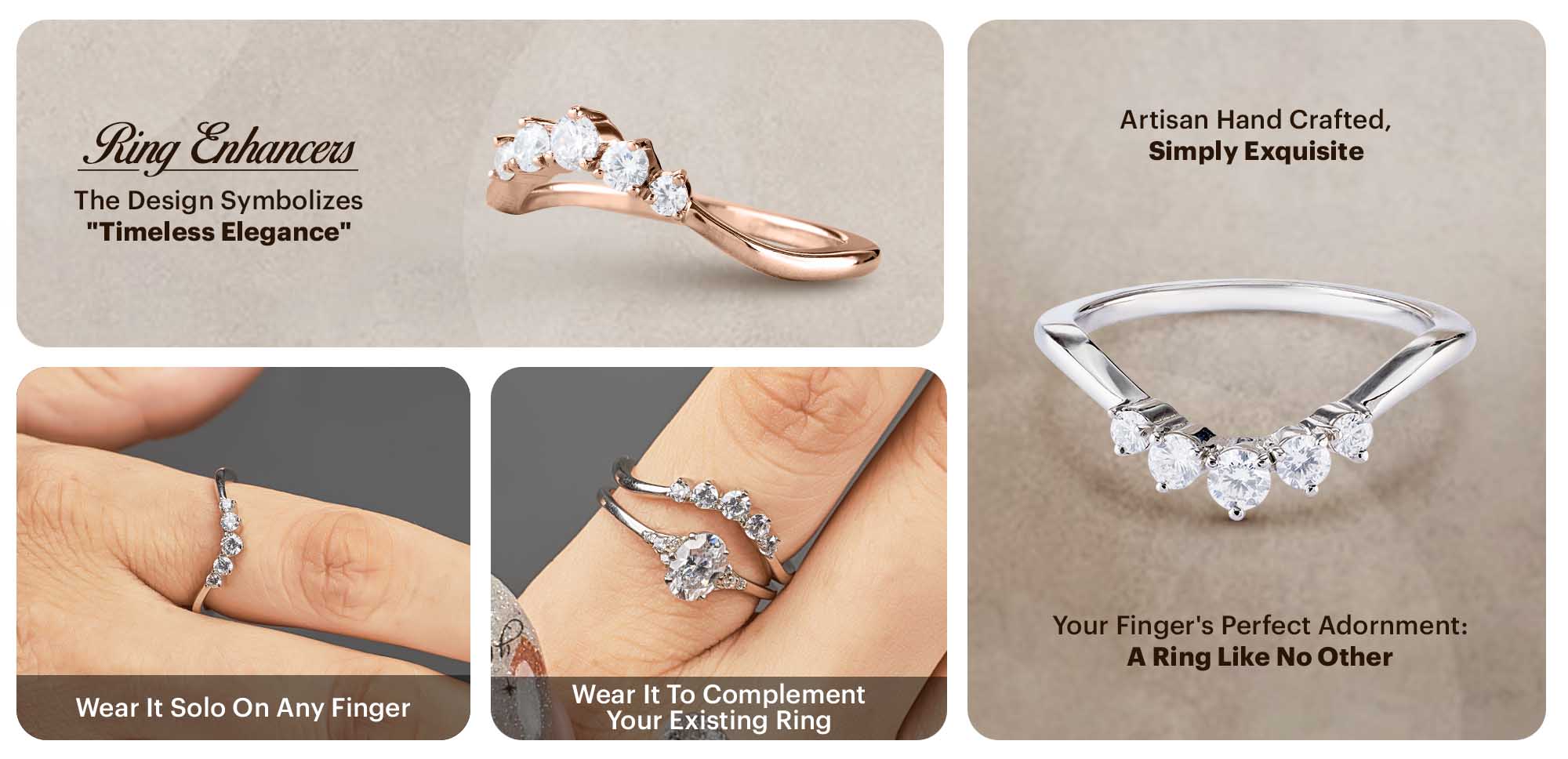 Moissanite Curved Ring Enhancer Wedding Band Stacking Band