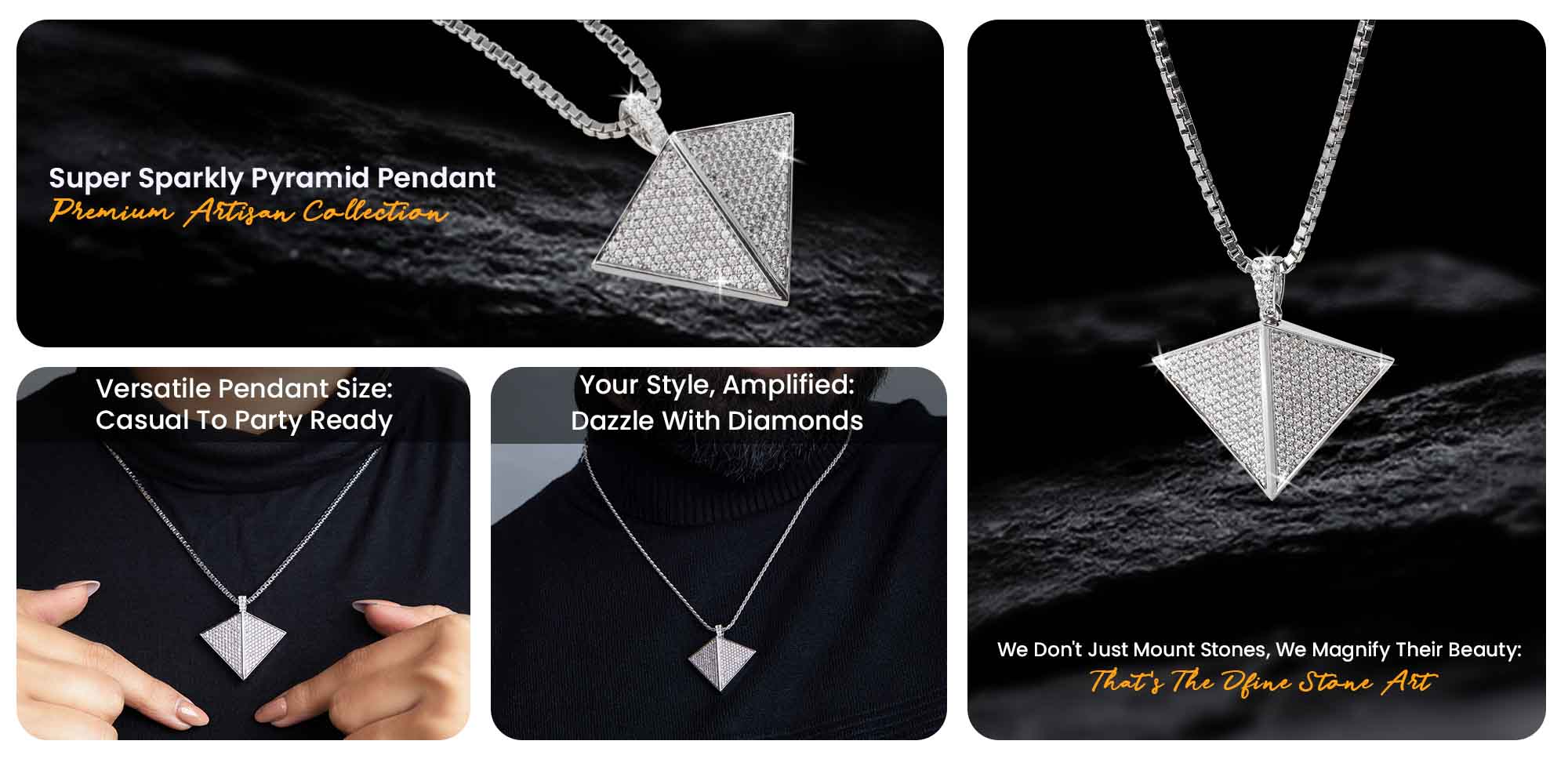 Learn moreMoissanite Iced Out Triangular Pendant Necklace Hip Hop Jewelry