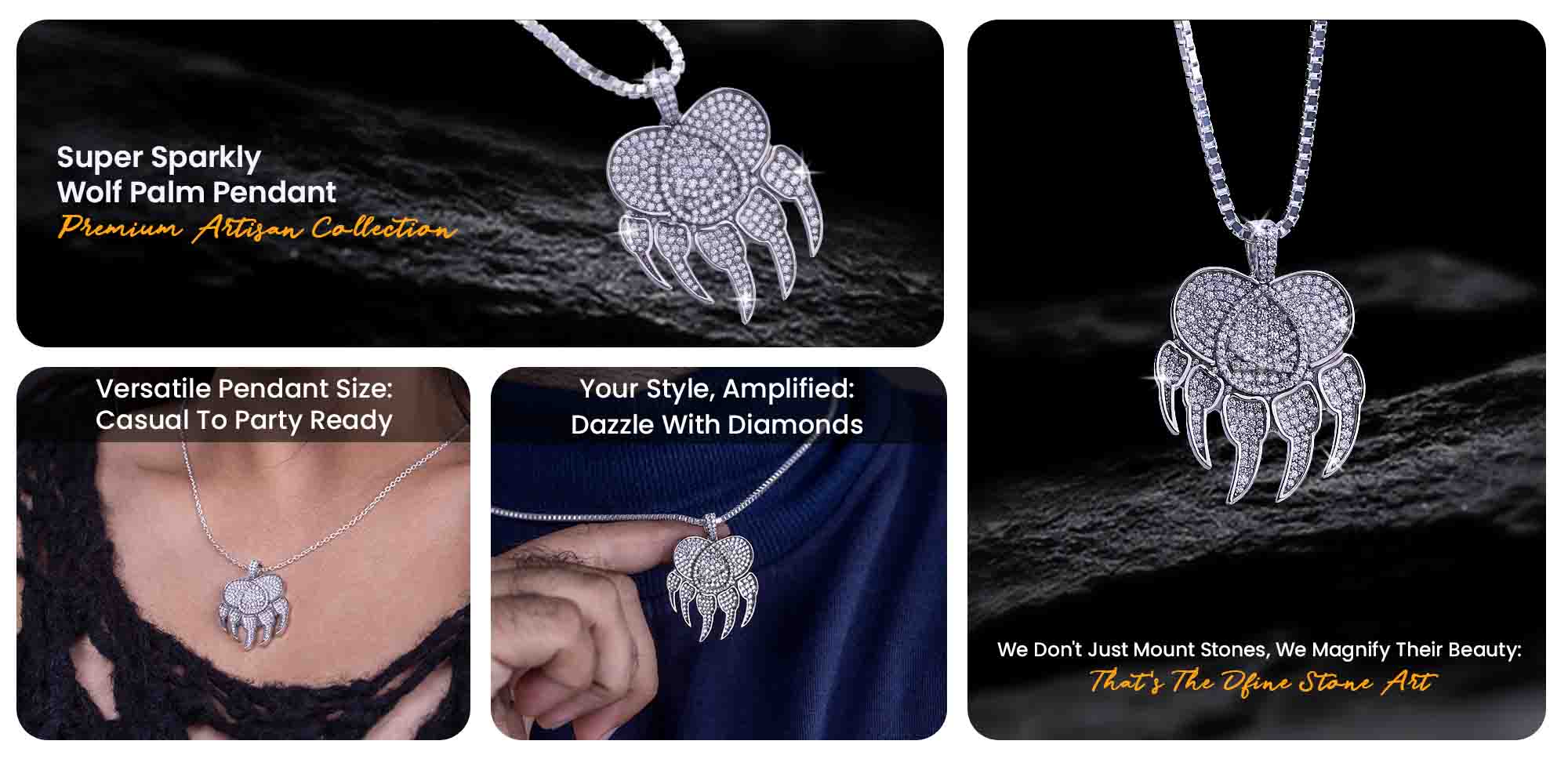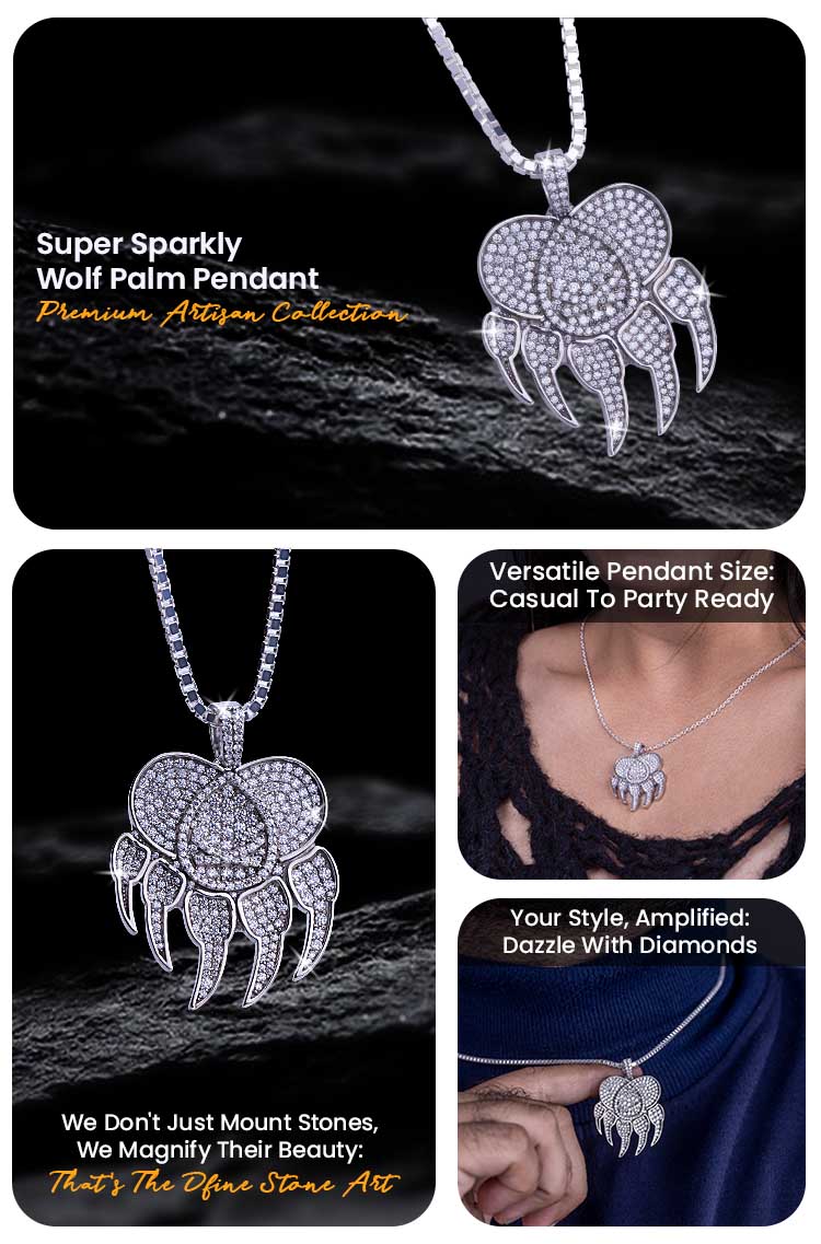 Learn moreMoissanite Icedout Paw Pendant Necklace Animal Jewelry Hip Hop