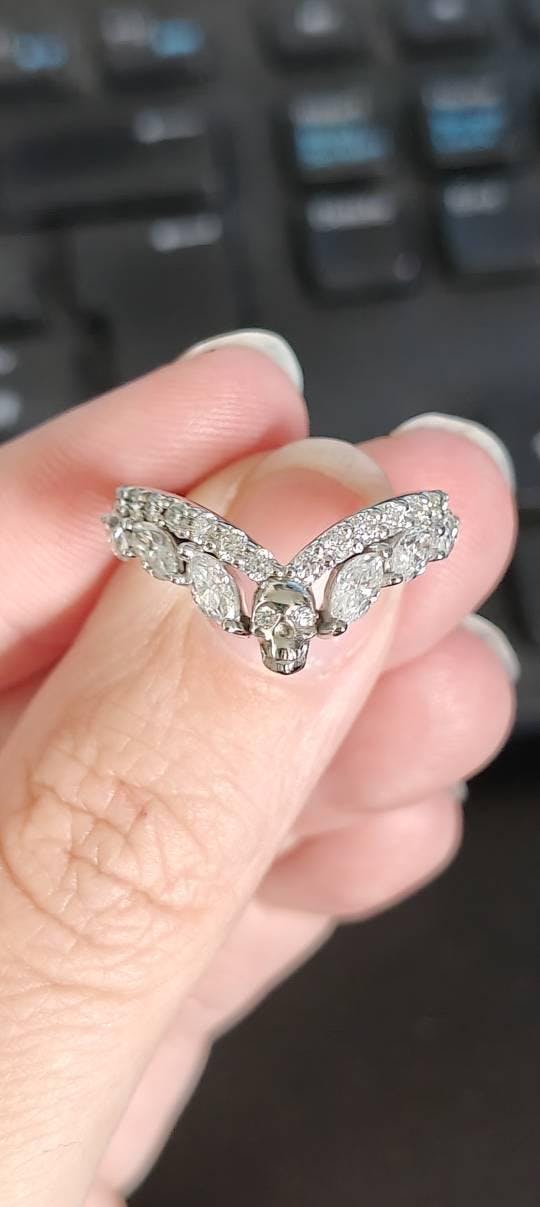 Moissanite Skull Ring Enhancer Curved Engagement Wedding Band Women Rose Gold