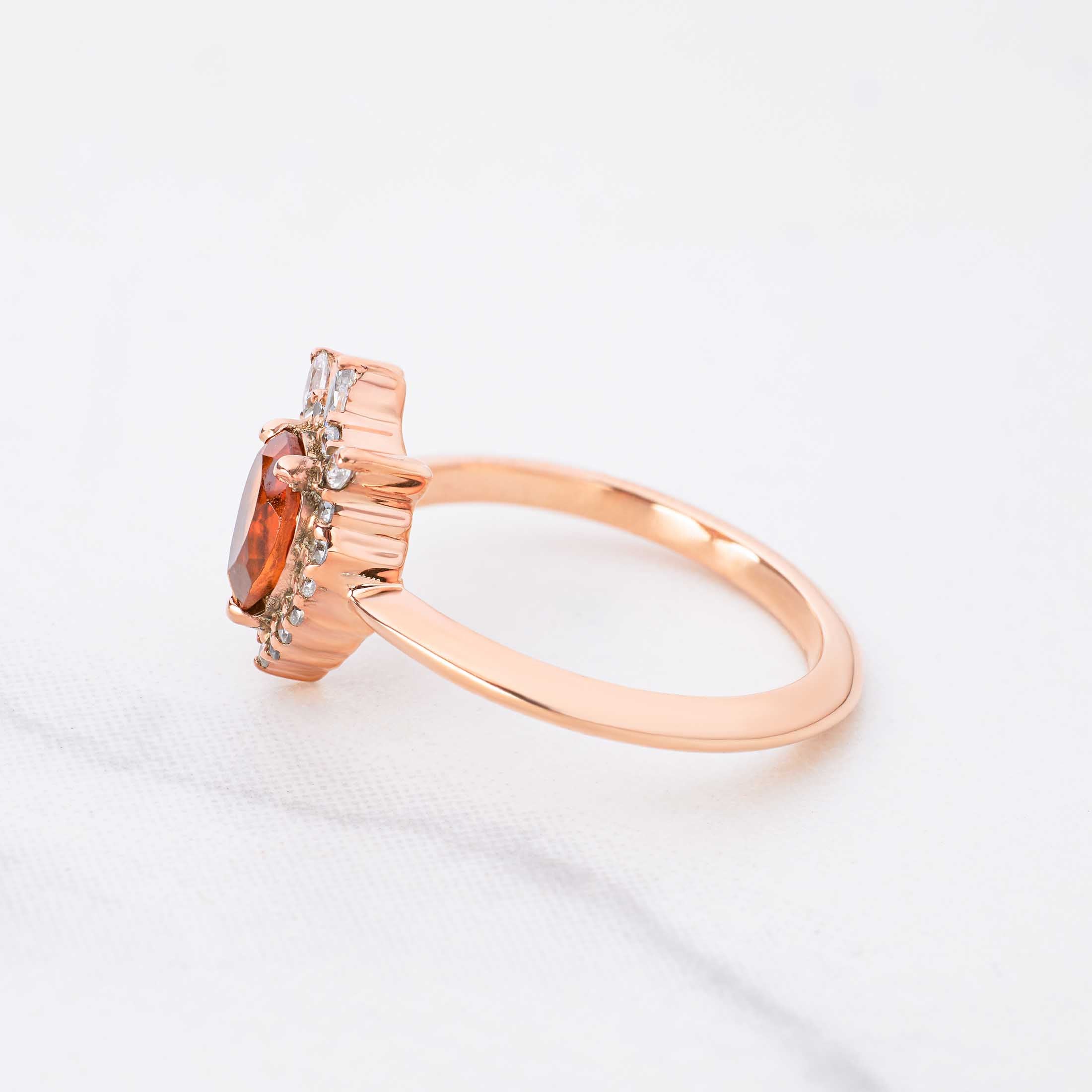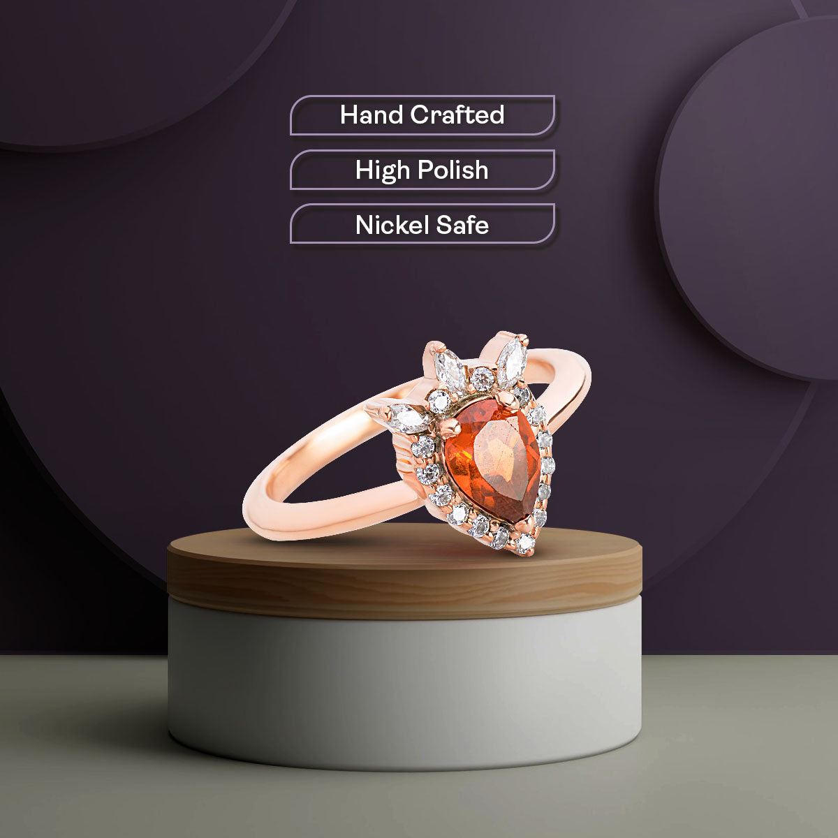 Natural Hessonite Ring Pear Cut Engagement Rings Rose Gold