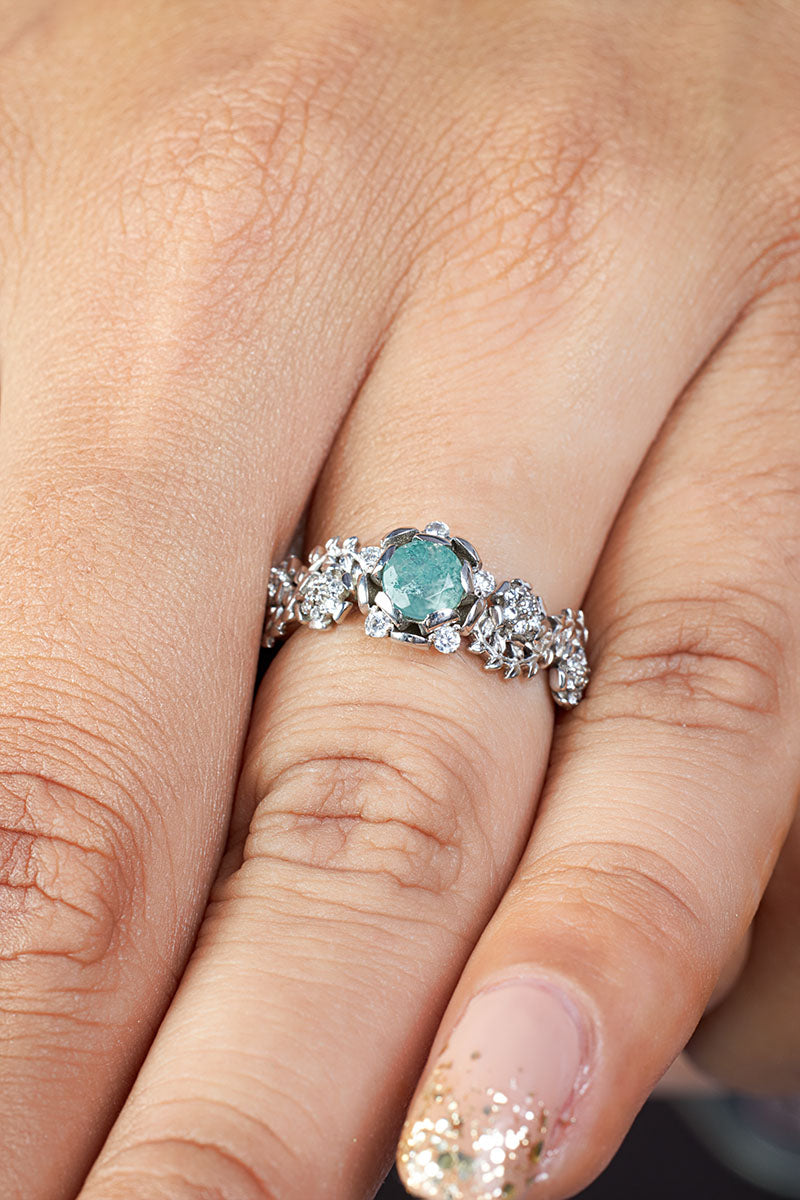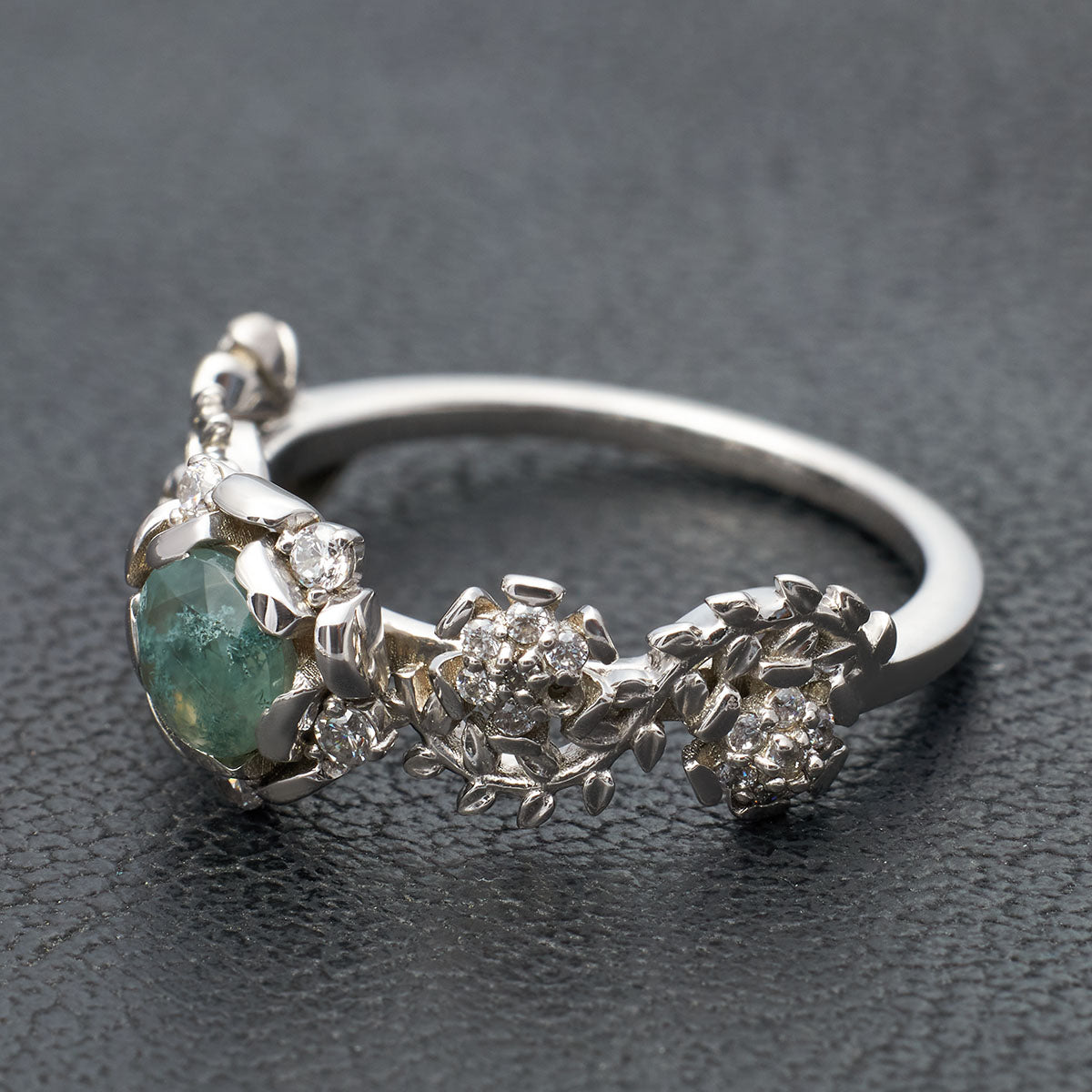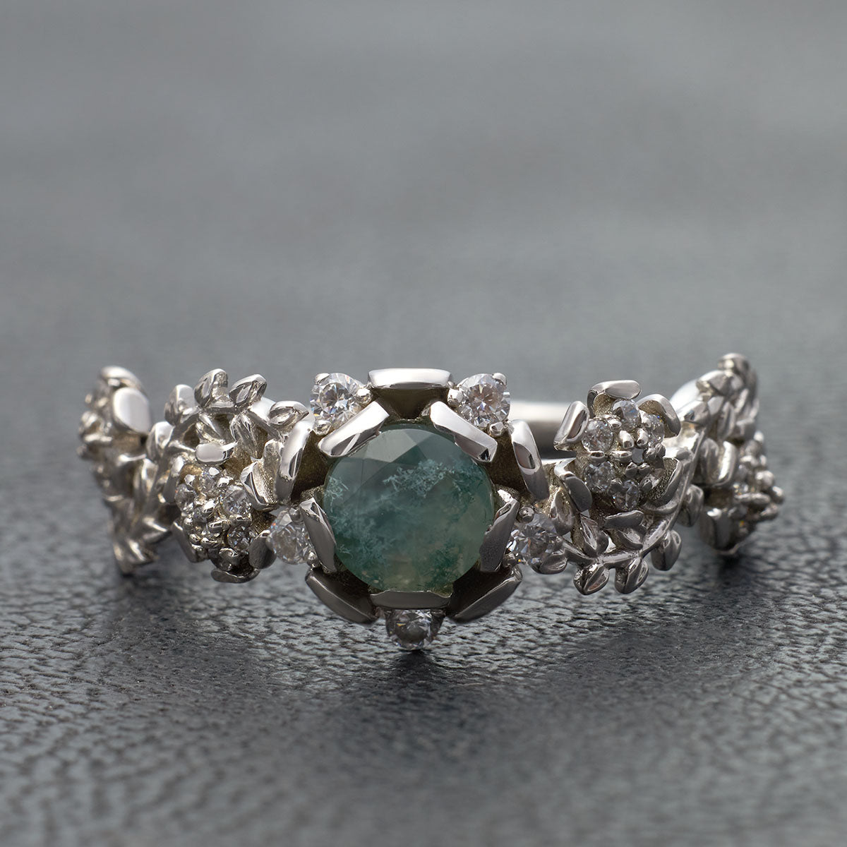 Learn moreNature Inspired Moss Agate Ring Cluster Diamond Flower Engagement Ring