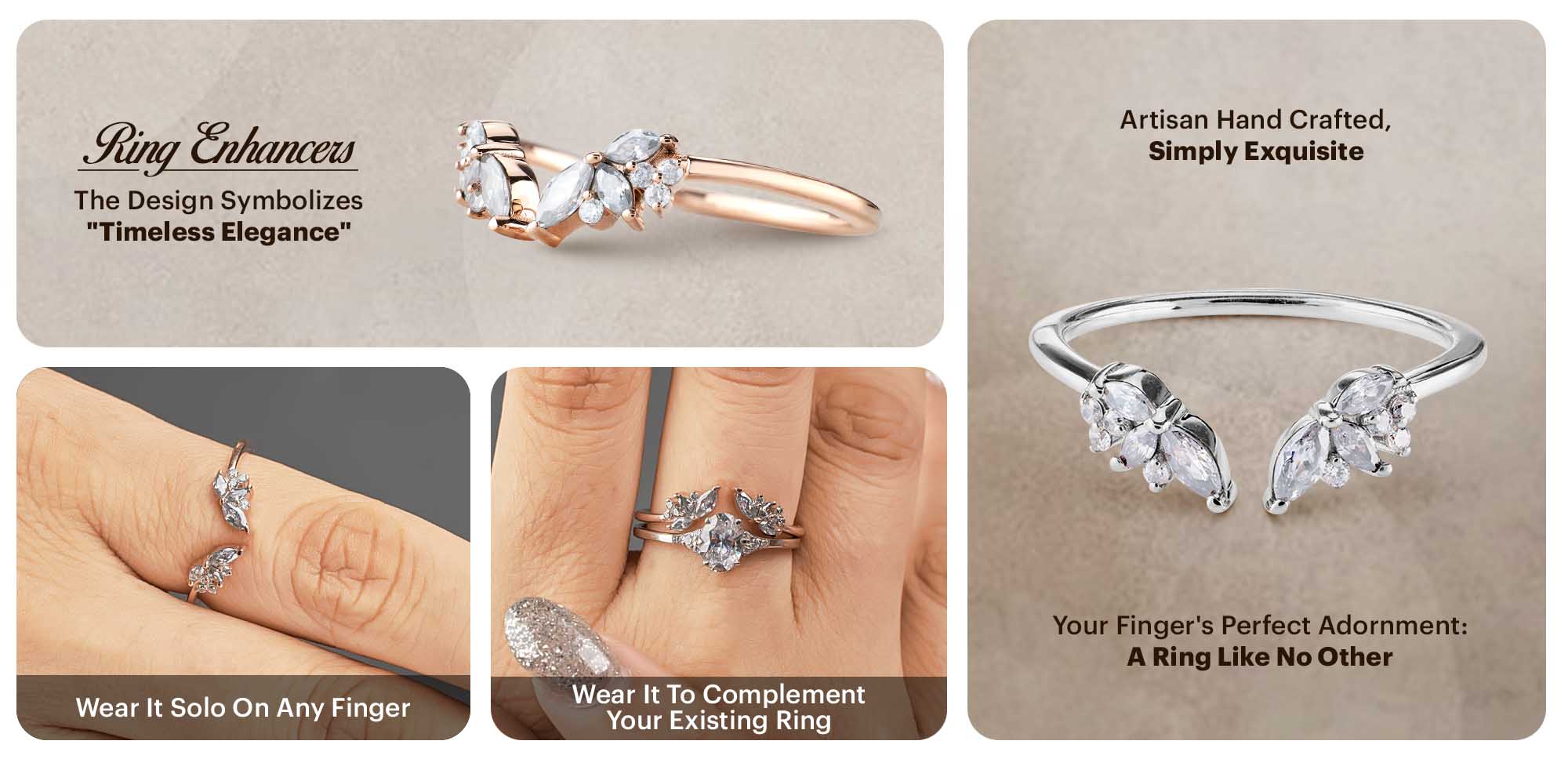 Open Ring Enhancer Cluster Moissanite Vintage Wedding Band