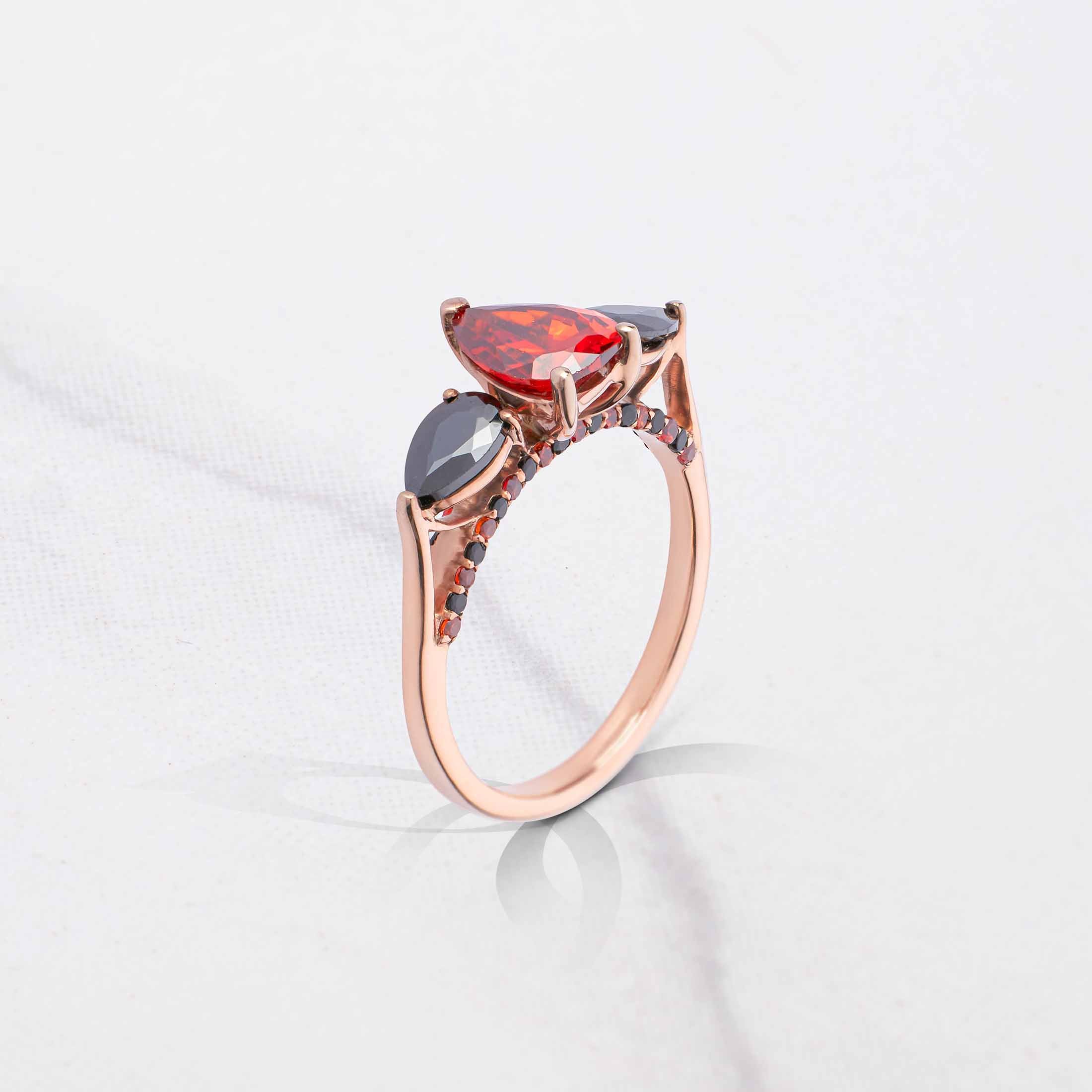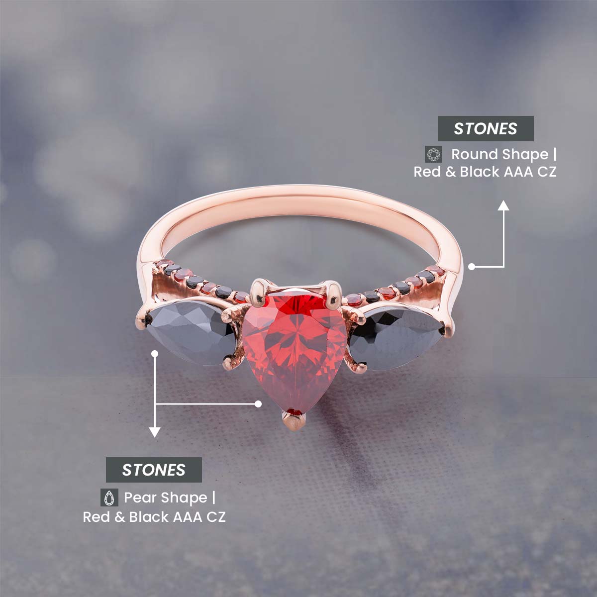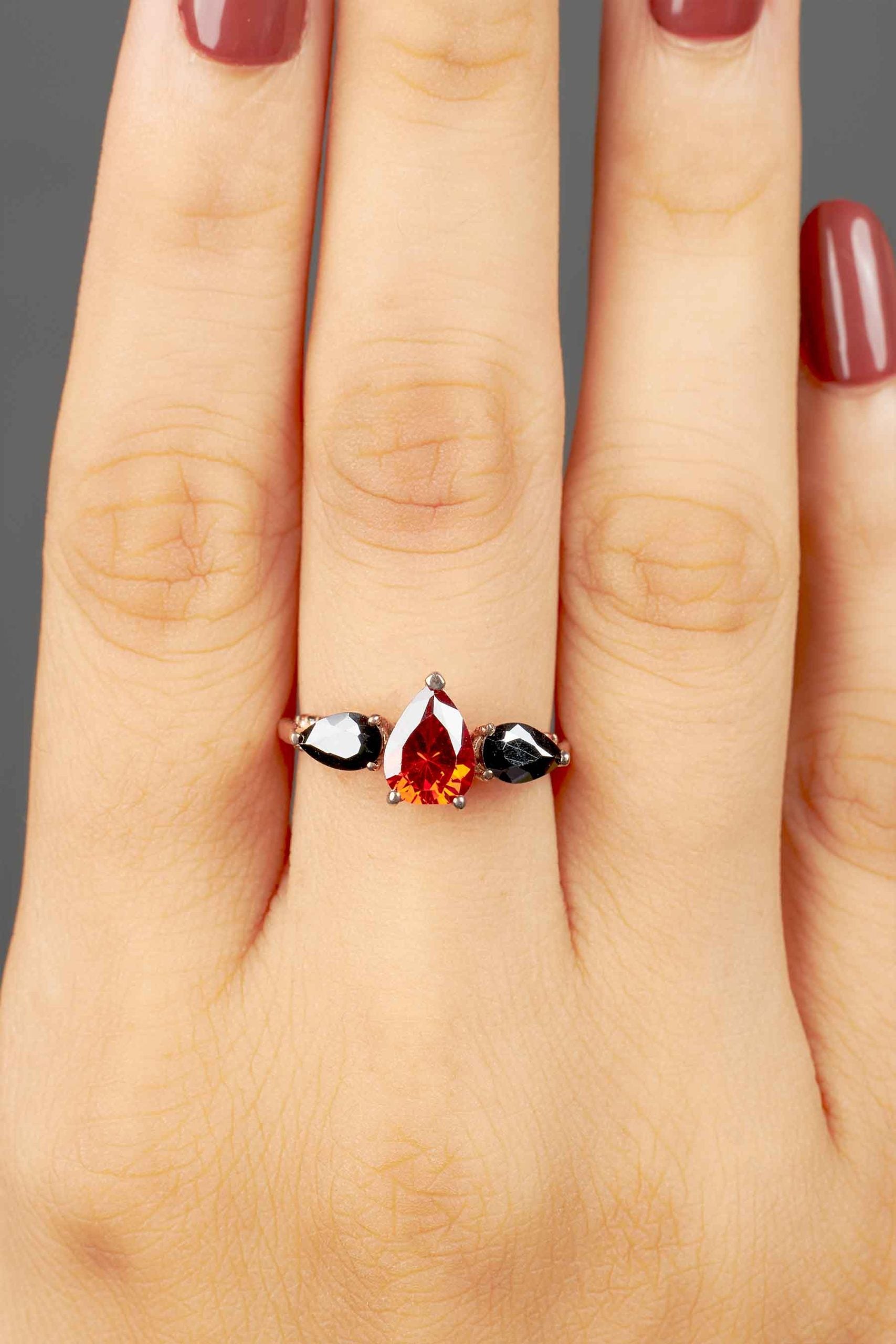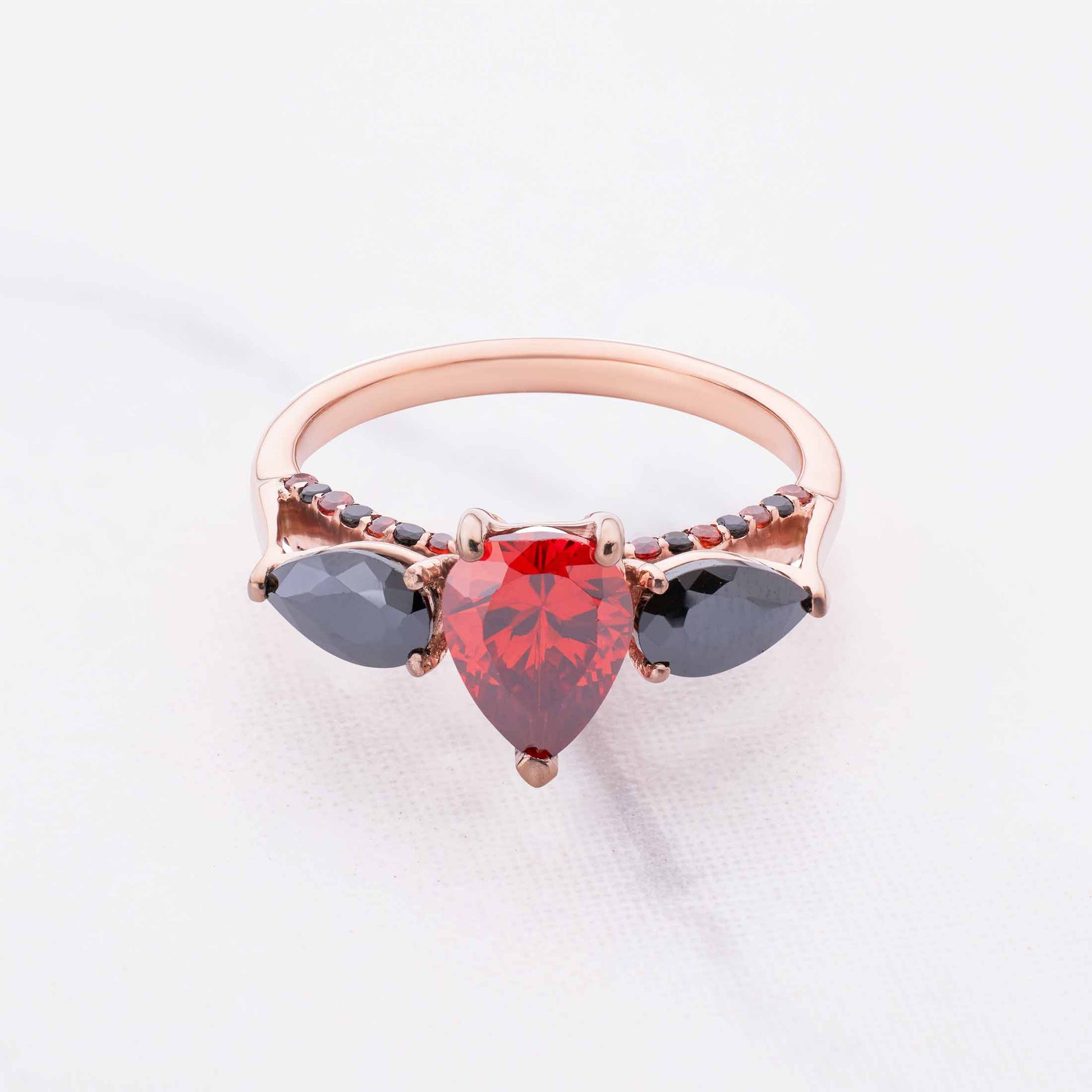 Learn morePear Cut Engagement Ring Red and Black Gemstone Ring 3 Stone