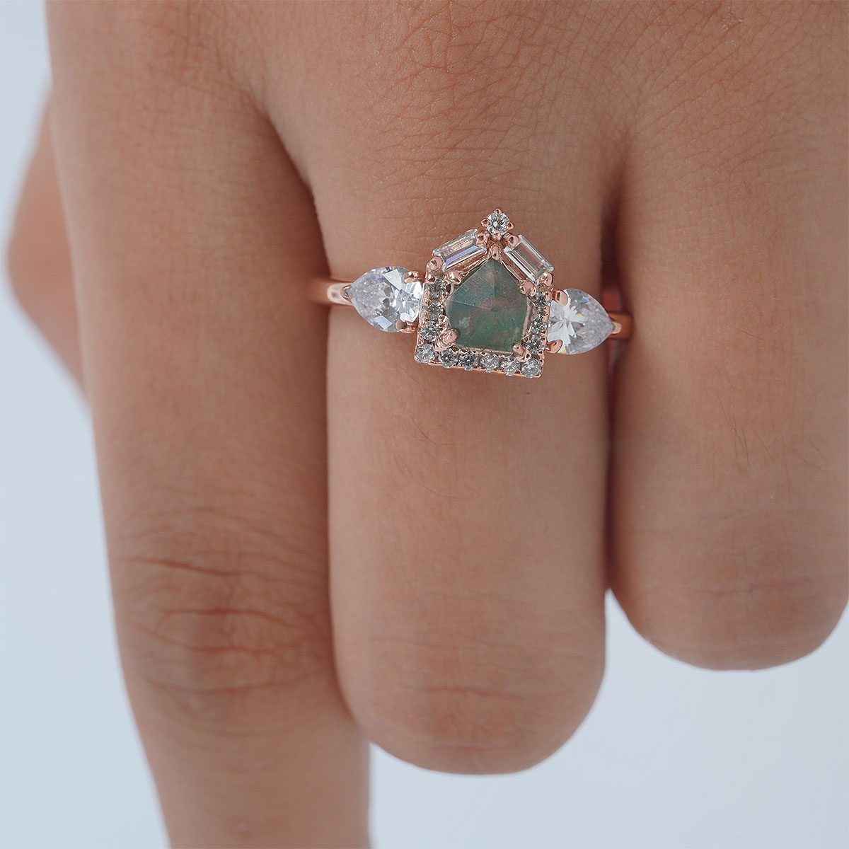 Learn moreRose Cut Natural Moss Agate Ring Fancy Engagement Rings