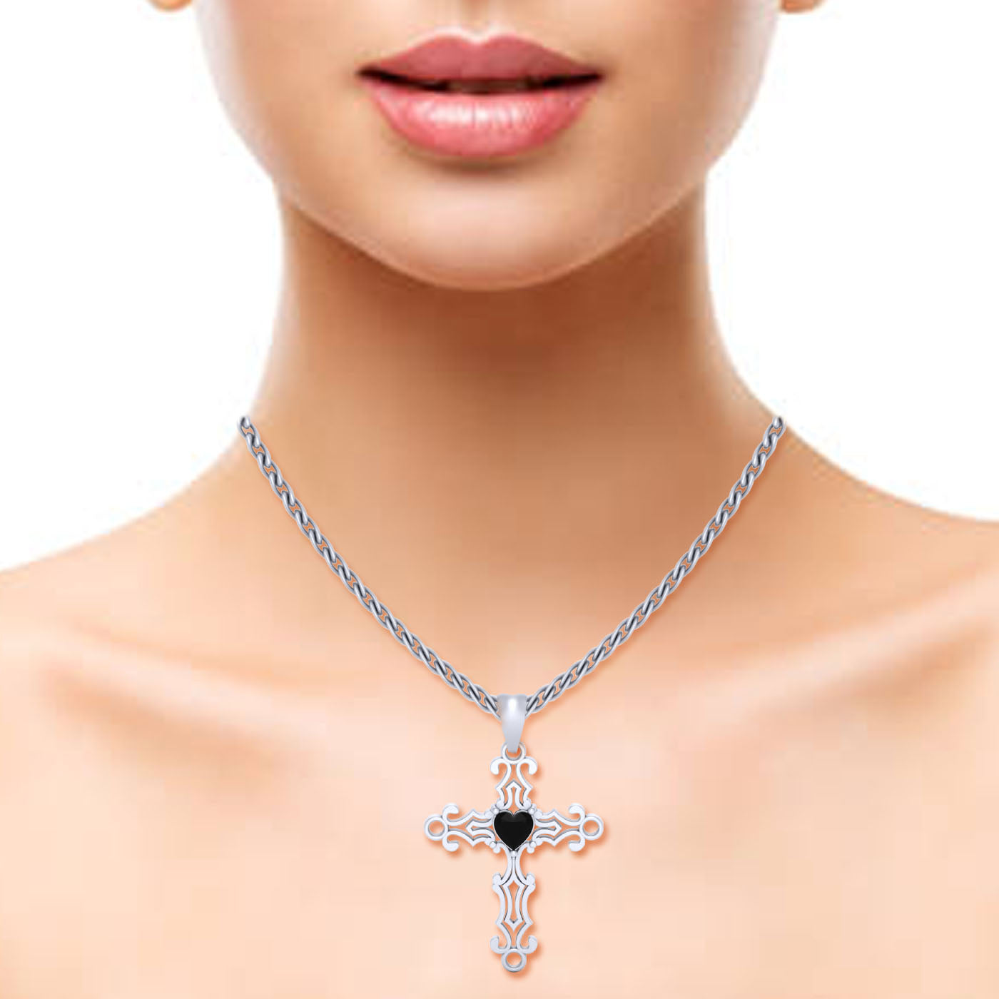 Silver Celtic Cross Pendant Black Onyx Heart Holy Cross Locket Gift