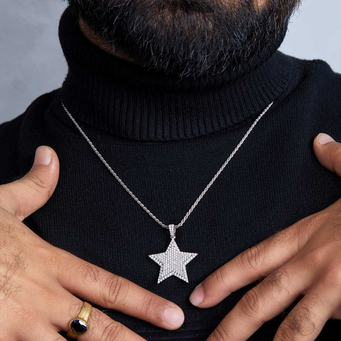 Iced Out Star Pendant Necklace Represents Luxury and Celestial Beauty, Made of High Quality Solid 925...