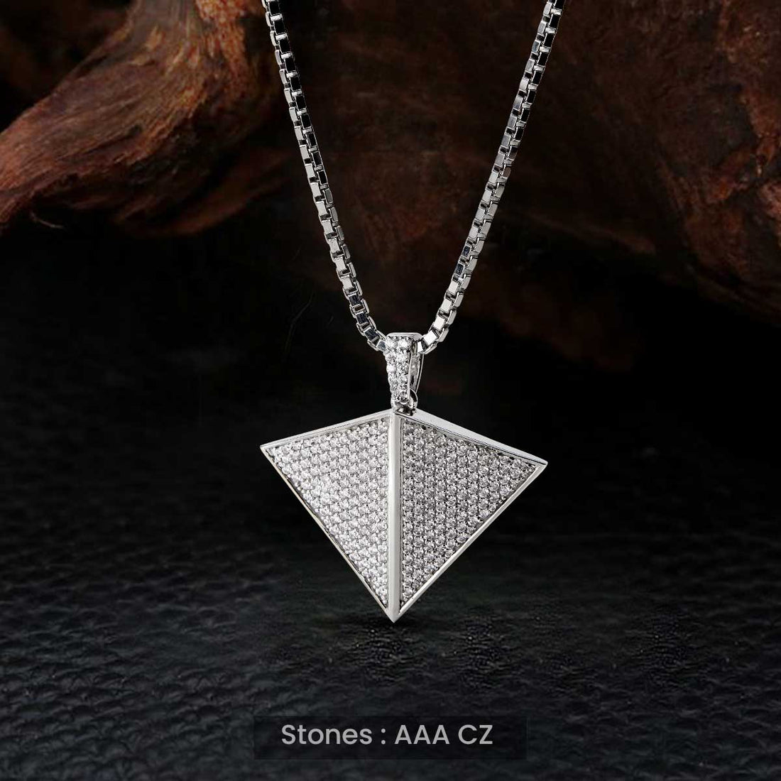 Iced Out Triangular Pendant Necklace Represents Strength, Manifestation, Enlightenment, and a Higher Perspective. This Quadrilateral...