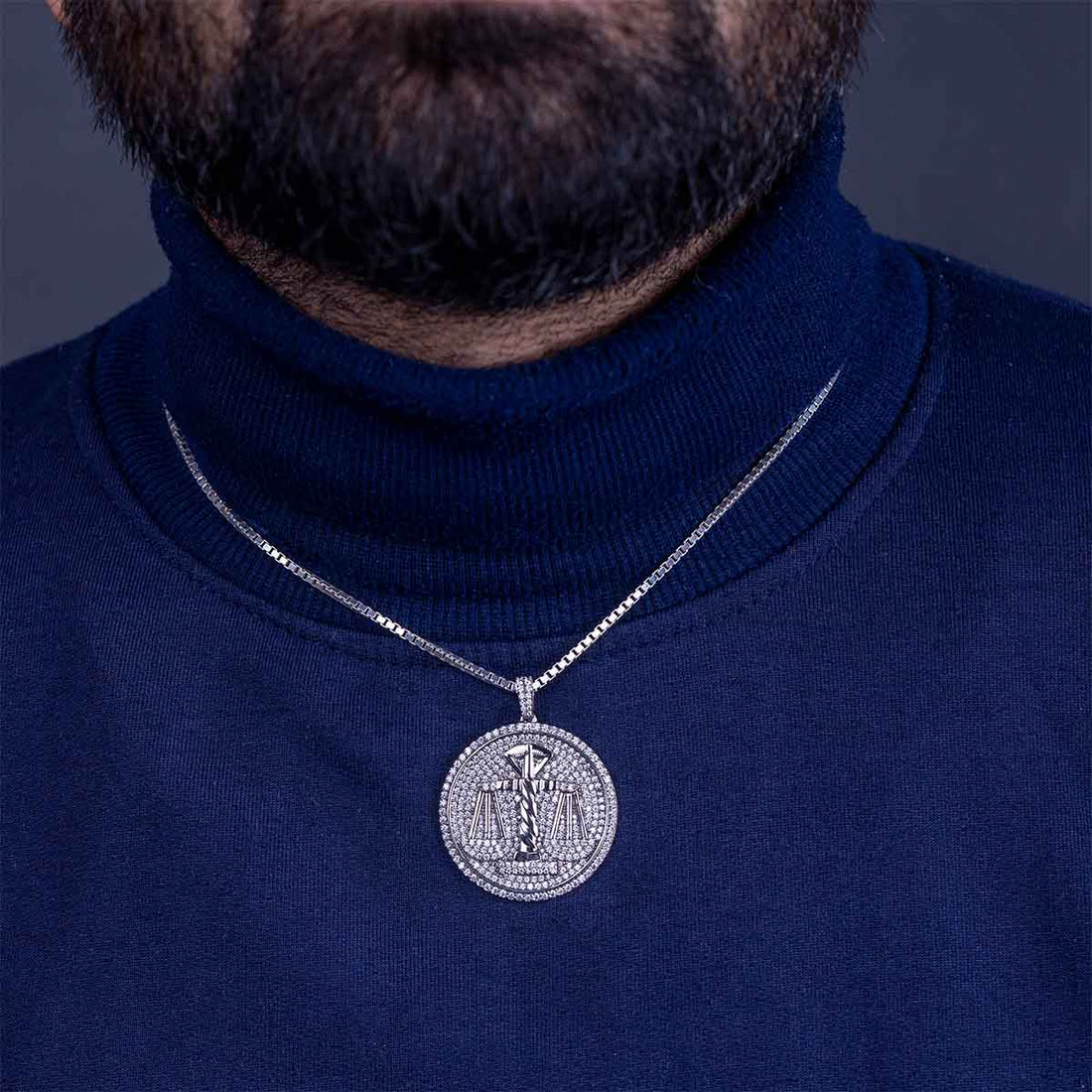 Scale of Justice Pendant Necklace Moissanite Iced Out Weight Balance Scale Libra Jewelry