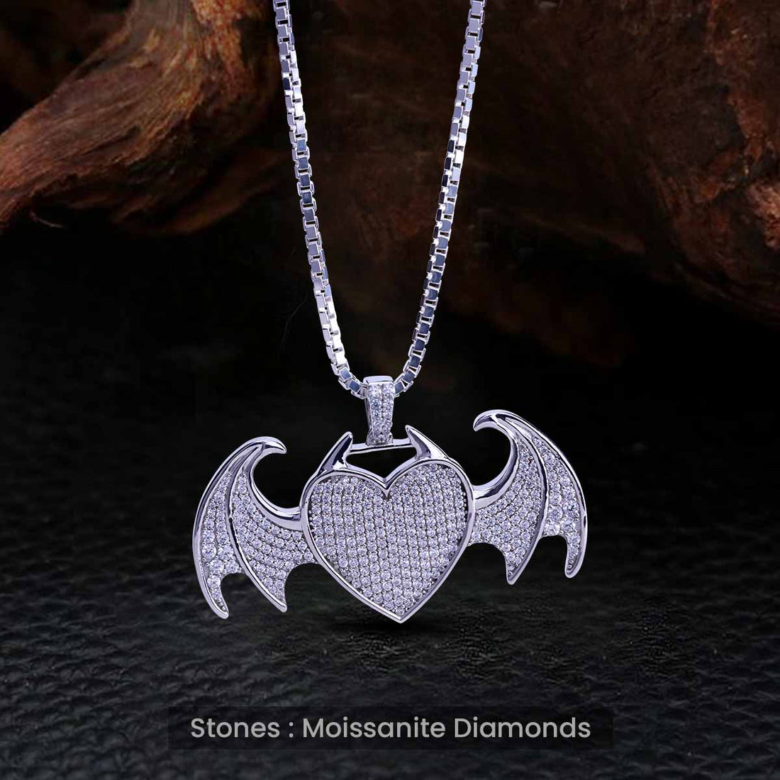 Moissanite Iced Out Heart with Dragon Wings Pendant Necklace Hip Hop Jewelry