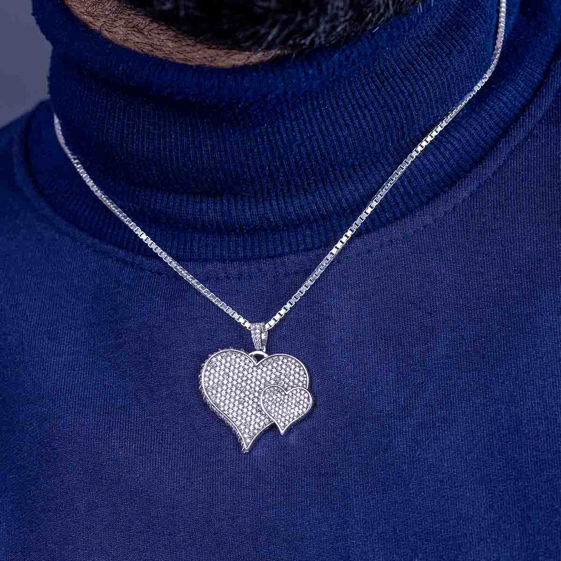 Iced Out Double Heart Necklace for Women Silver Heart Pendant
